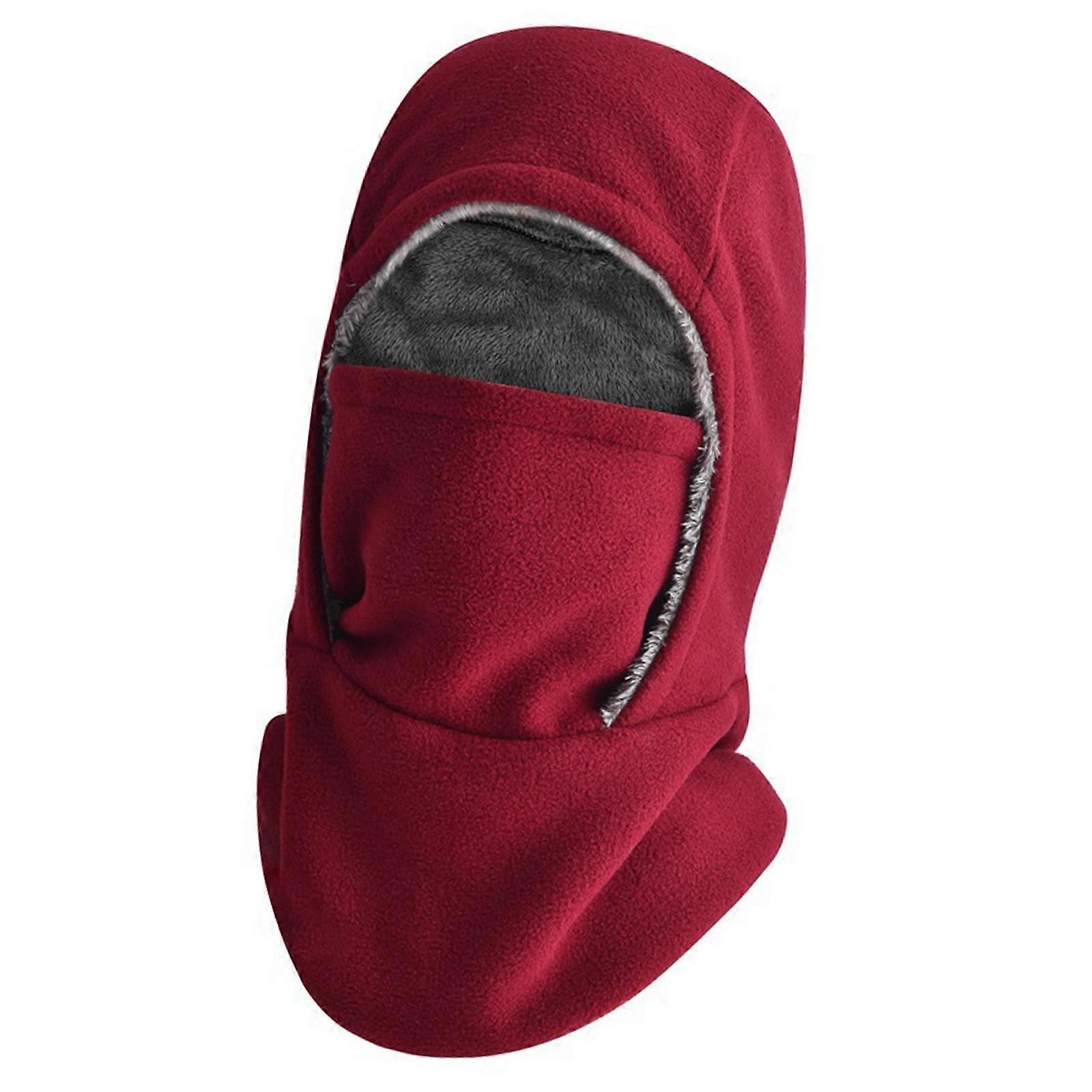 Winter Outdoor Cycling Face Mask Hat Full Face Coverage Windproof Hooded Hat For Outdoor Sport Adults Teens Headwear Burgundy os