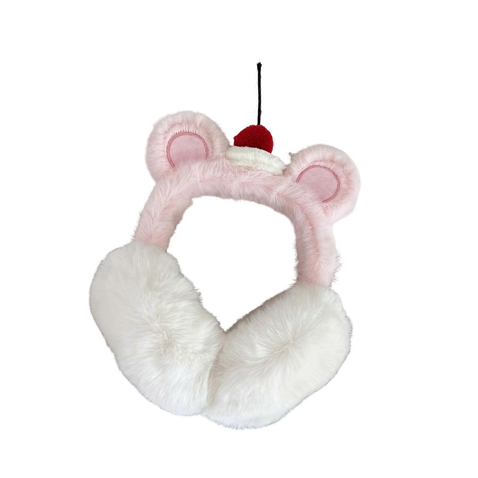 Cherry Bear Earmuffs For Women And Girls, Soft Fleece Lining, Adjustable Winter Ear Covers For Outdoor Use Light Pink