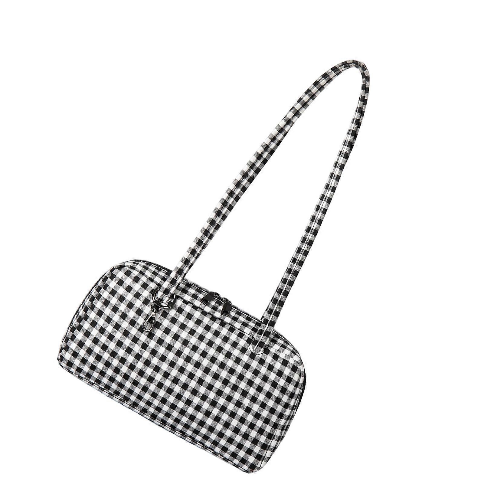 Modern Plaids ShoulderBag For Women Soft Textured Suedes Fabric Roomy Interior Inspired Work Bag lattice