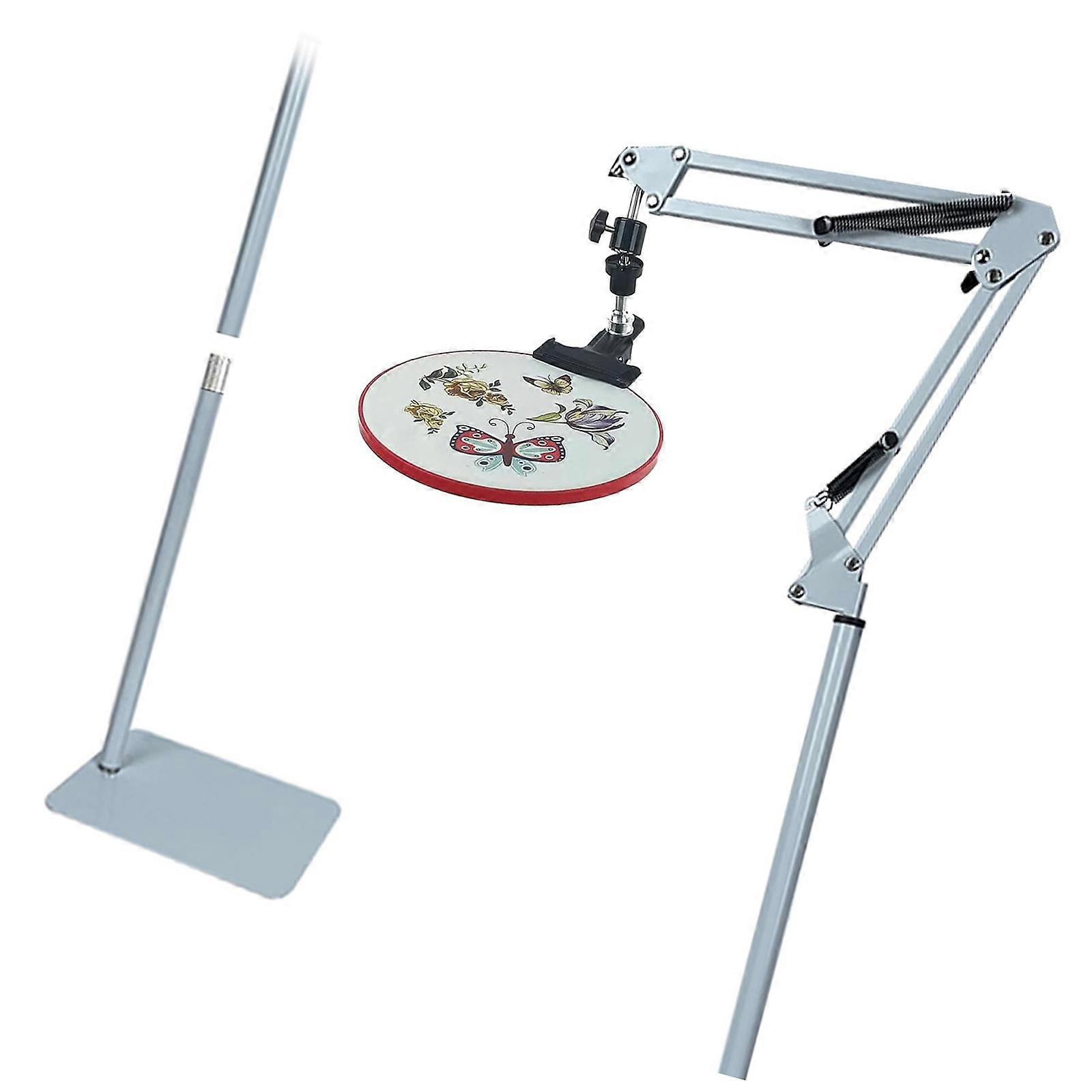 Adjustable Embroidery Hoop Stand Embroidery Frame Stand Crosses Stitching Stand with Phone Holder Embroidery Floor Stand White