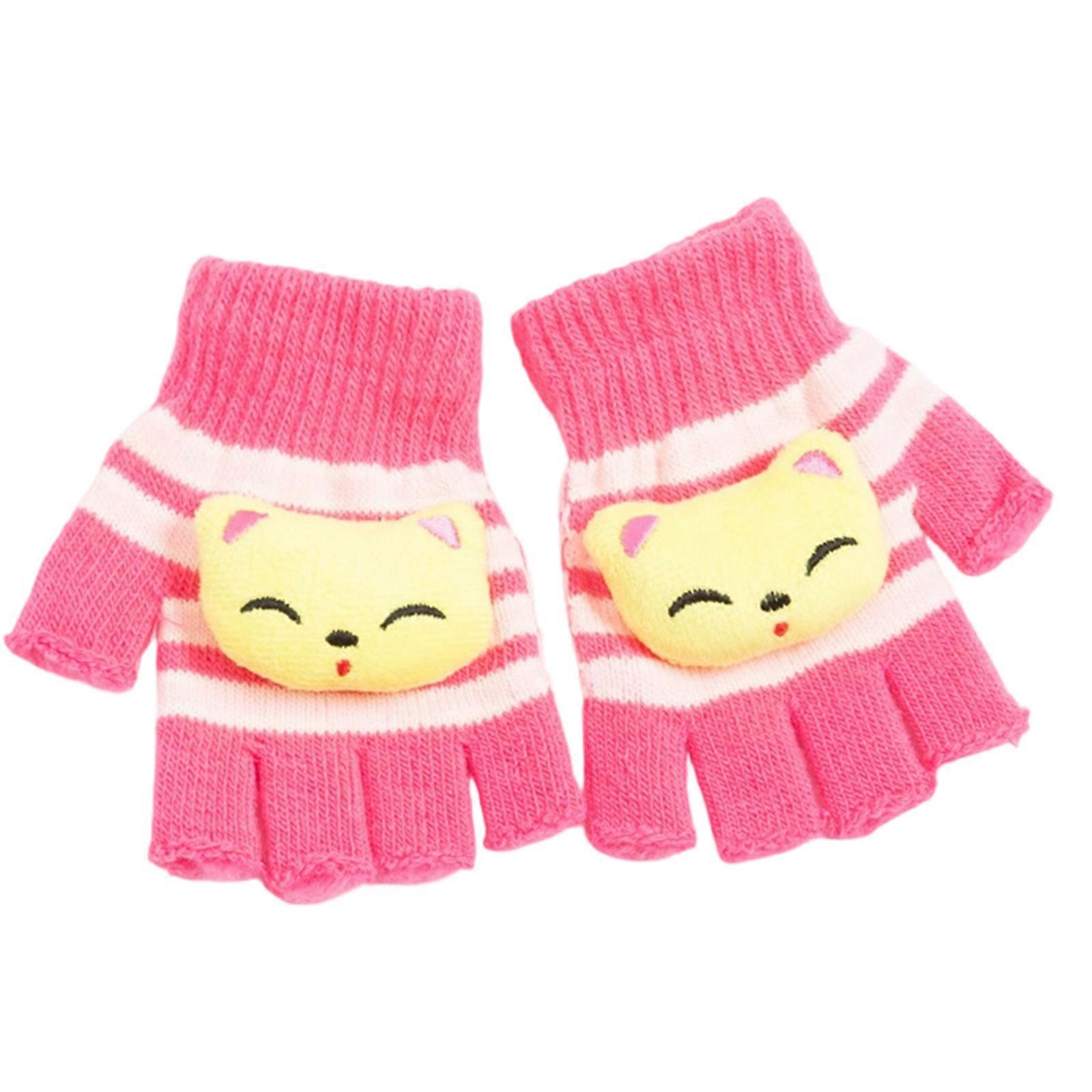 Cute Bear Patterned Gloves For Boys Girls Warm Fleece Hand Protection Lightweight Travel Friendly sunset red