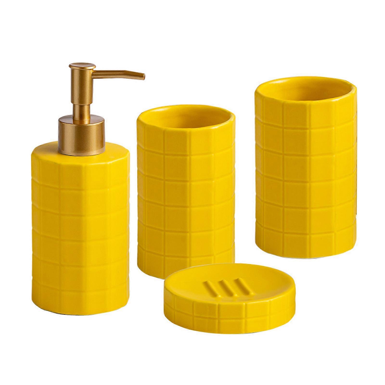 Ceramic Bathroom Set With NonSlip Base Toiletry Includes Soap Dispenser, Toothbrush Holder For Modern Bathrooms Yellow