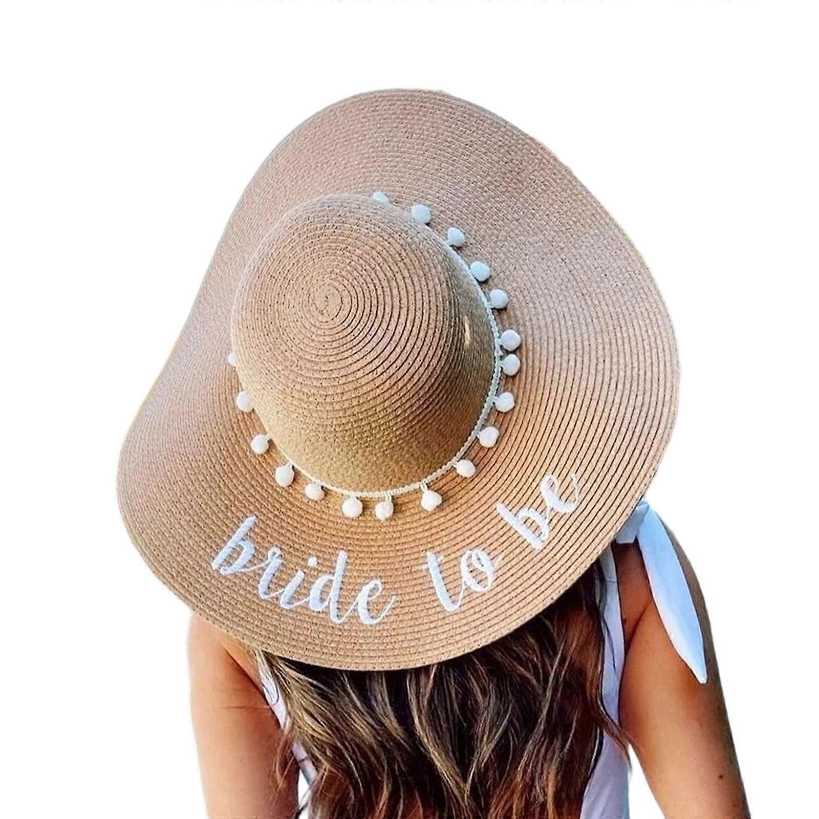 Beach Wedding Oversized Hat Lace Bride Hat With Straw Tasseled Embellishment For Bridal Party Multicolor