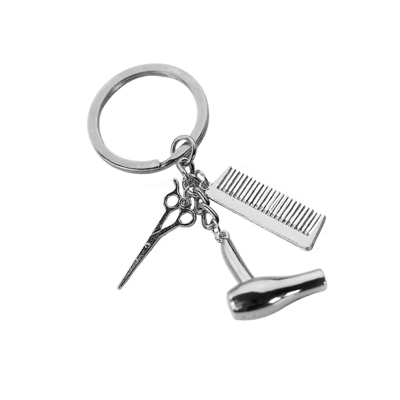 Compact Hair Styling Tools Keychain Made Of Premium Alloy Perfect For Car Keys Bag Charm Trendy Jewelry Gift Silver
