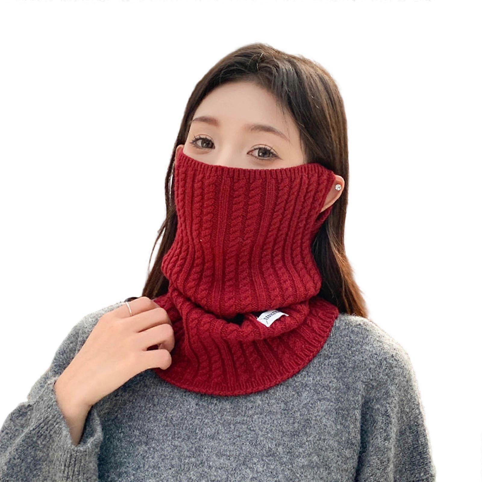 Thickened Warm Ear Hook Windproof Face Mask Scarf For Men Women Outdoor Sports Cycling Skiing Cold Weather Red