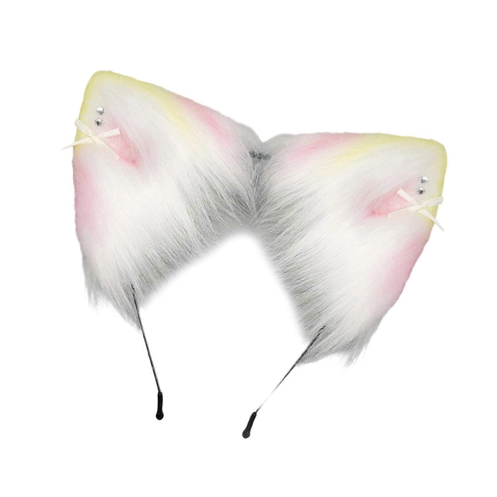 Lovely Faux Hair Puss Ear Headpiece Thin Hair Addition Females Women Costumes Daily Use Pink yellow