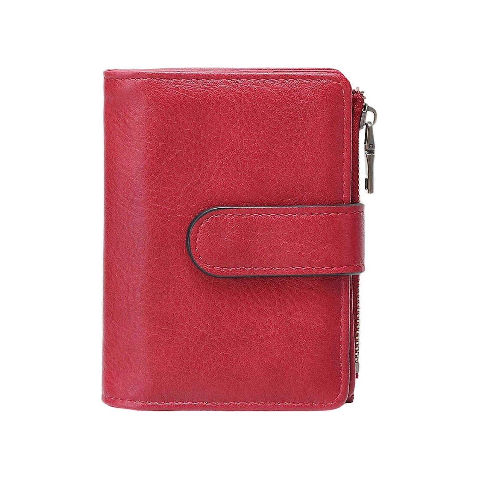 Fashion PU Leather Wallet Compact Blocking Coin Purse Multiple Card Slots Secure Closure For Men Women Red
