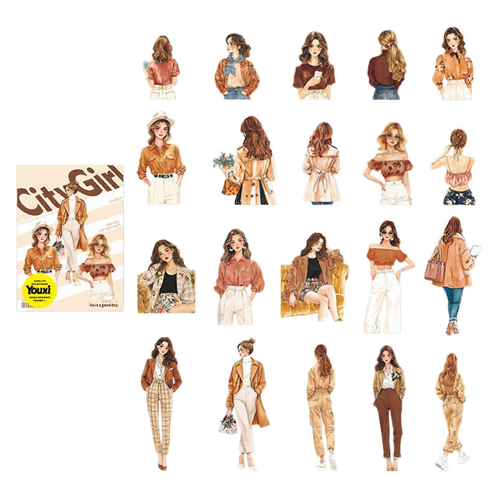20PCS City Girl Transfers For Scrapbooking Journals Phone Decoration Identity Adhesive Removable Papercraft Materials Creative DIY Craft Projects