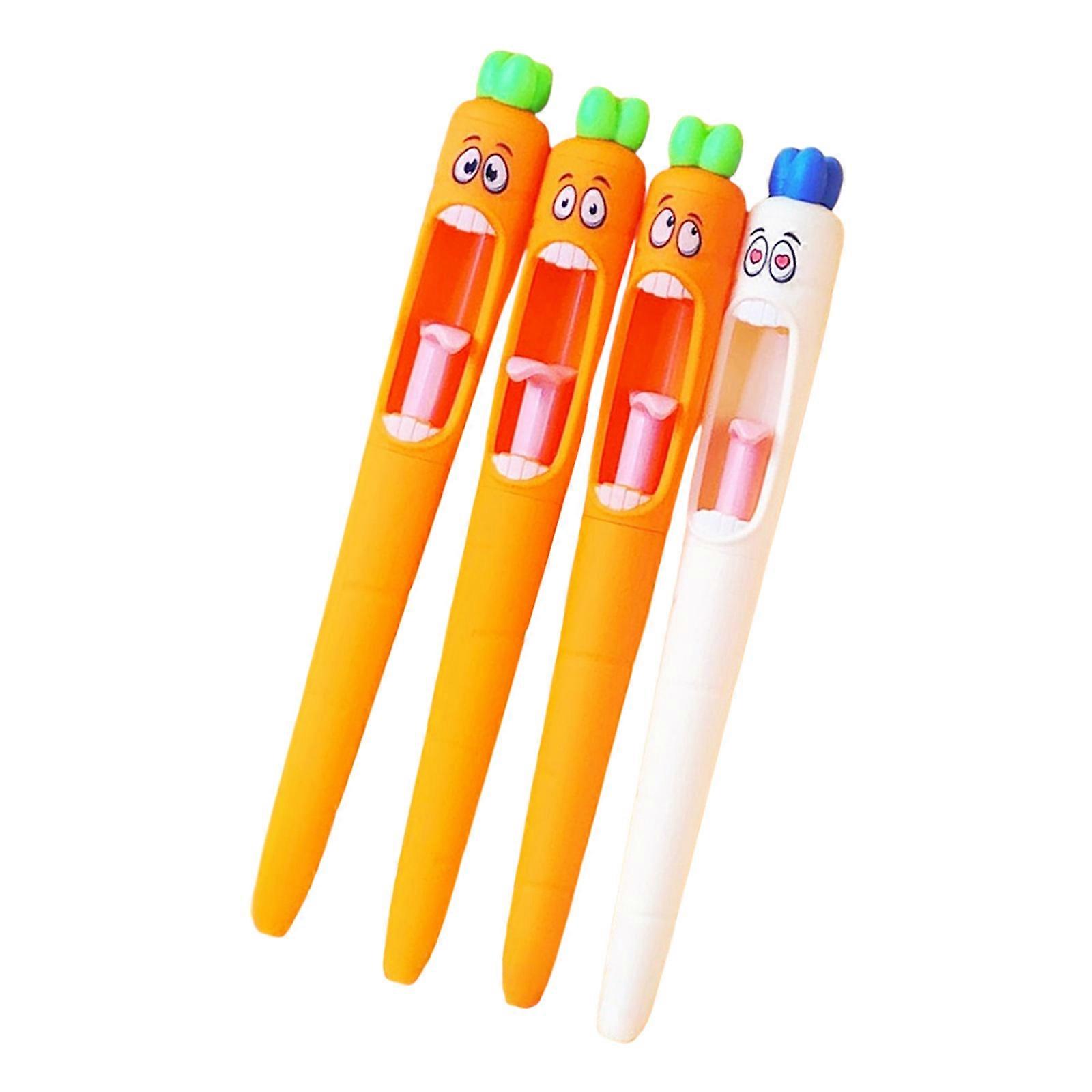 Features: Funny carrots gel pen is good for writing, drawing, drafting, and painting tools. Multifunctional gel pen set is a fun way to write and let creativity run wild. Suitable for journal writing, drawing detail, school, office. You could give this recreation gel pen set as present to your family, friend, students, and colleagues. The ergonomical grip of the neutral pen is comfortable, giving you a good writing experience. Great for corporate teams, and students requiring writing tools for daily documentation, and academic projects. Specifications: Component: Plastic+inks Length: about 14.5cm/5.71'' Inks Color: Black Package Includes: 4 Pcs/Set Gel Pen note: Please allow 1-3cm errors due to manual measurement. Due to the difference betweeen different monitors,the picture may not reflect the actual color of the item.