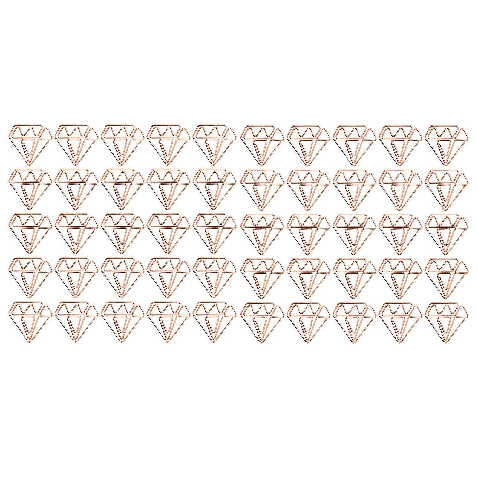 Miniature Diamonds Shaped Paper Clips, 50Pcs Decorative Binders Clips Scrapbook Markers Planner Decoration Supplies rose gold