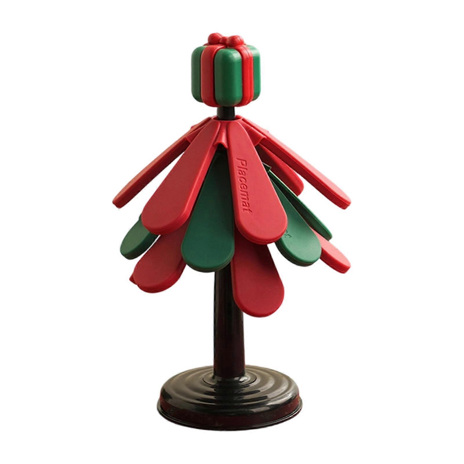 Christmas Tree Pattern Heat Resistant ABS PVC Trivet Coasters Placemat For Hot Pots Bowls Holiday Decoration Multicolor