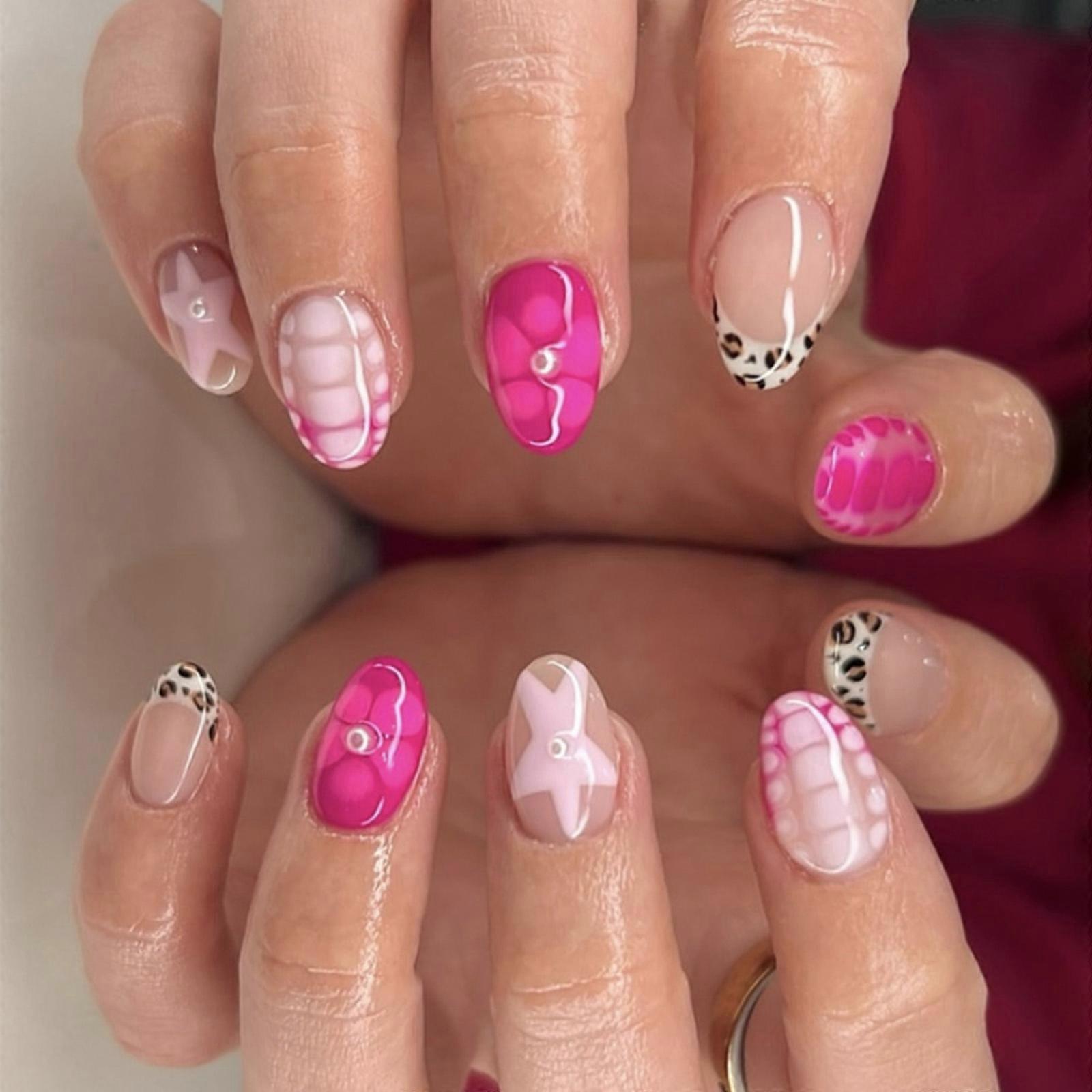 Rose Floral Star Fake Nail Snug Almond Shape ABS Materials Artificial Nail For Instantly Manicure for Social Event Multicolor