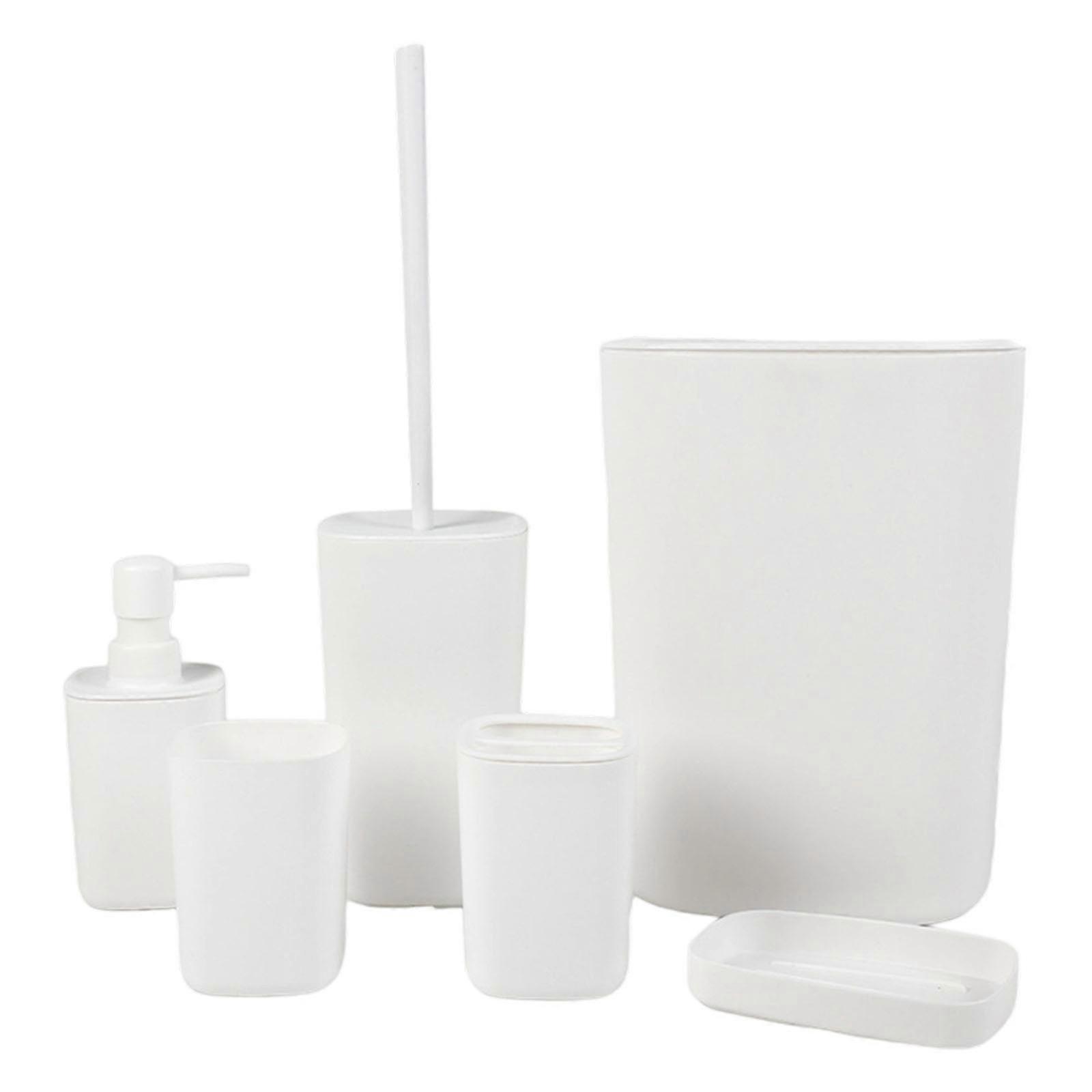 6 Part Bathroom Planner Set Plastic Toothbrush Owner Waste Container Combination For Modern Bathroom Storage White