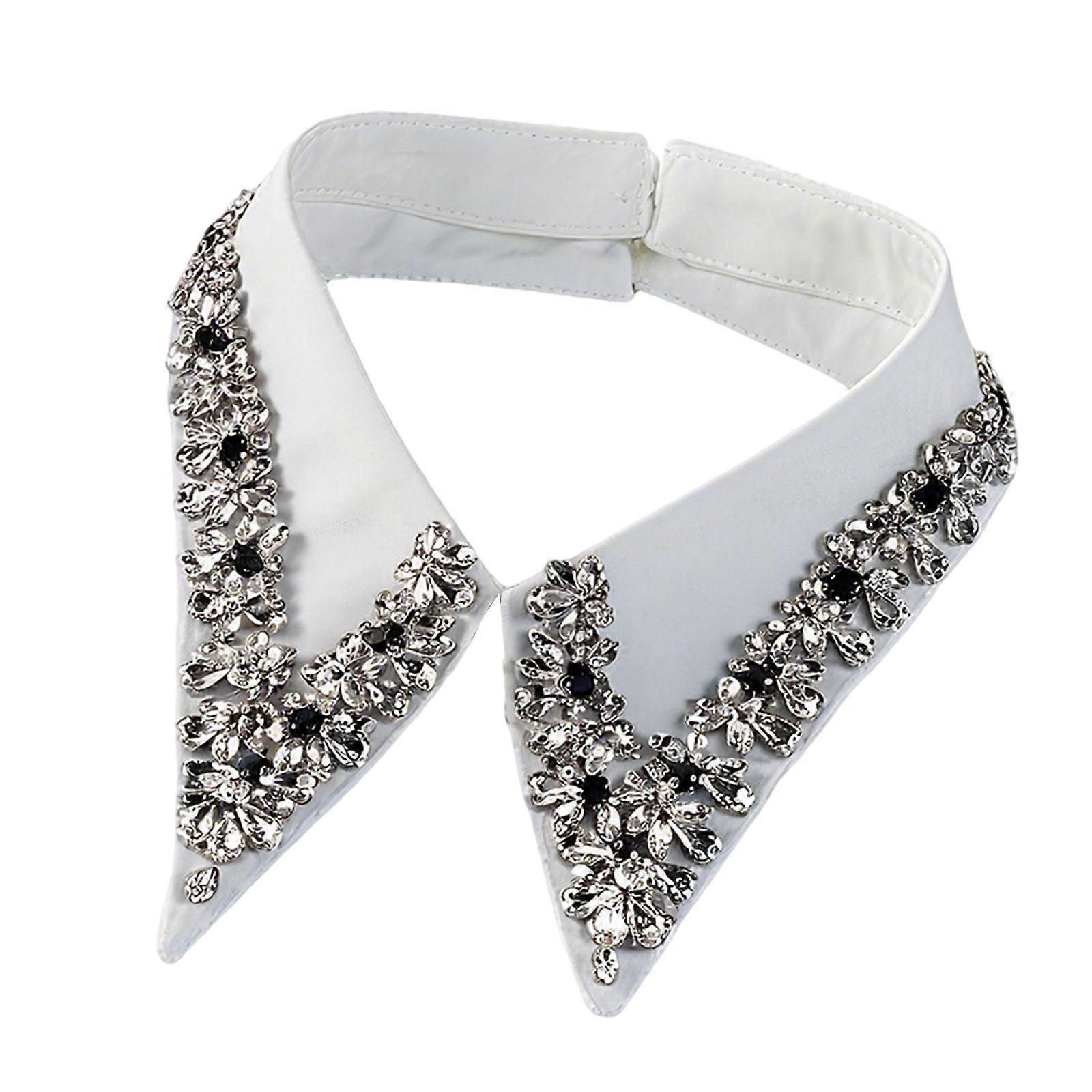 Rhinestones Decorated Comfortable Polyester Faux Collar For Business Event And Evening Occasion White