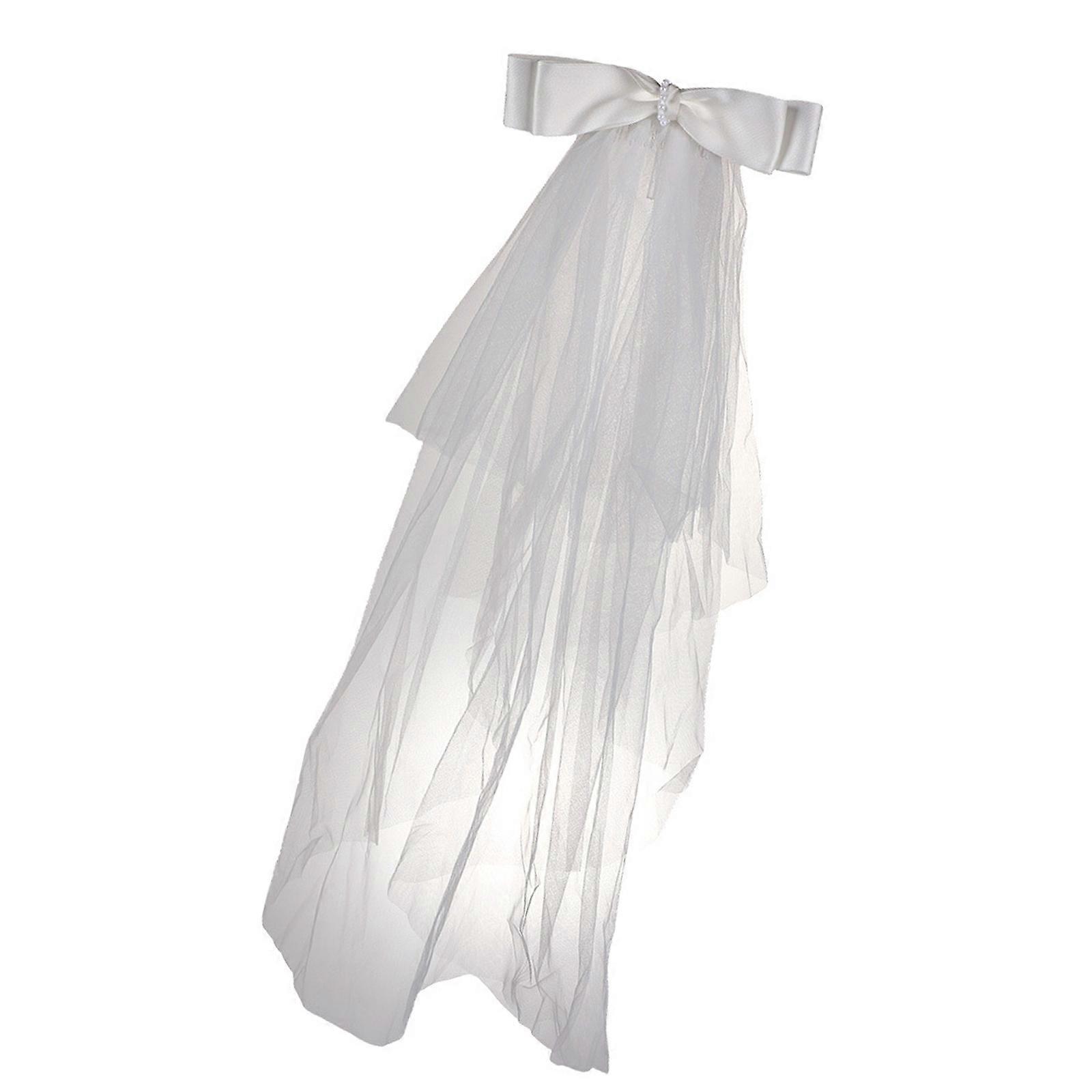 Romance Wedding Veils With Elegant Bowknot and Hair Comb Bride Veils For Ceremony and Formal Occasion Photography Props White
