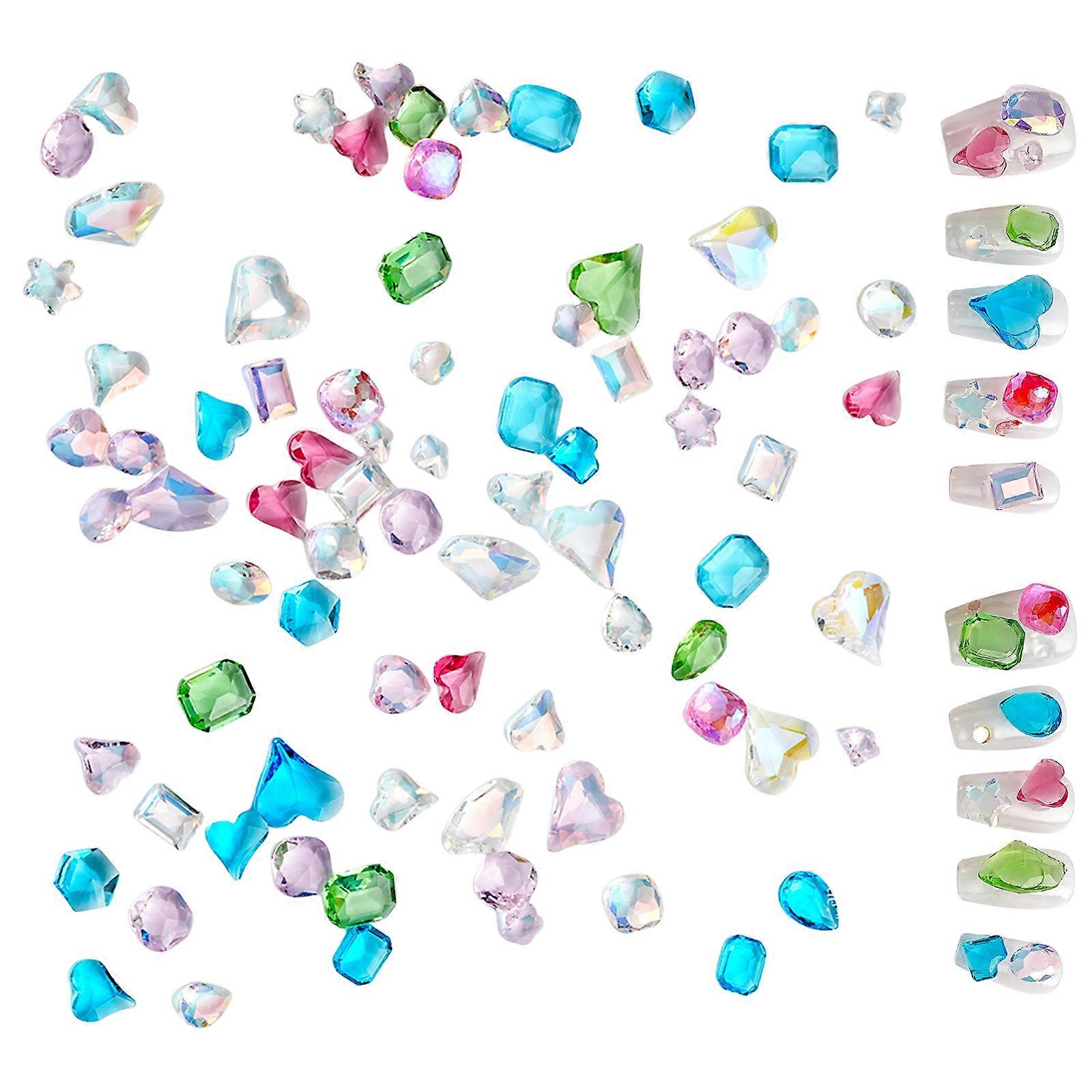50/100 Pcs Heart Nails Art Charms Mix Shape Nail Gems Charm Sparkling Nail Rhinestones Nails Art Decorations Multicolor