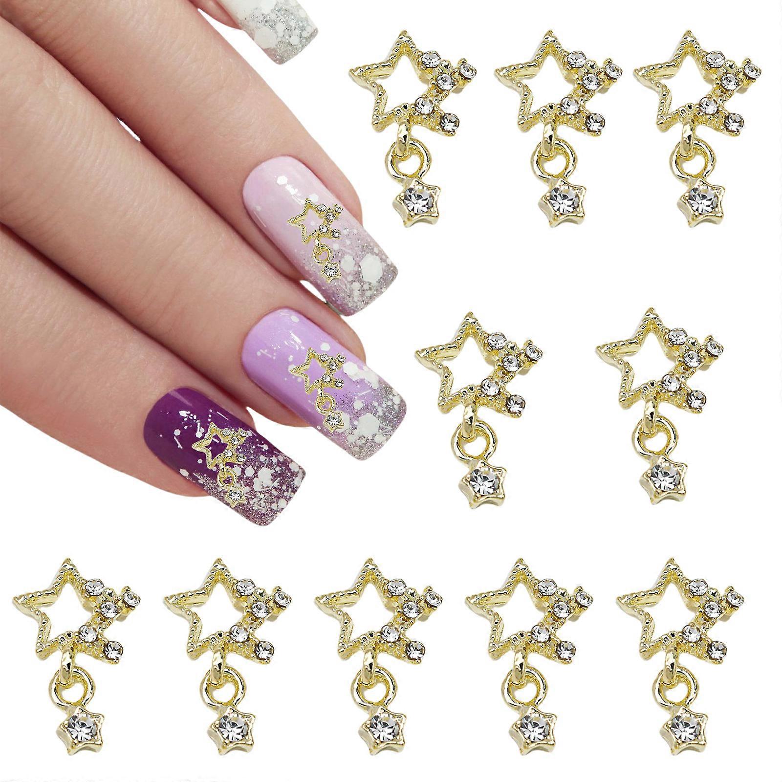 10 Pieces Beautiful Star Nails Art Charms Nails Rhinestones Dangling Star Nail Charms Nail Supplies Multicolor