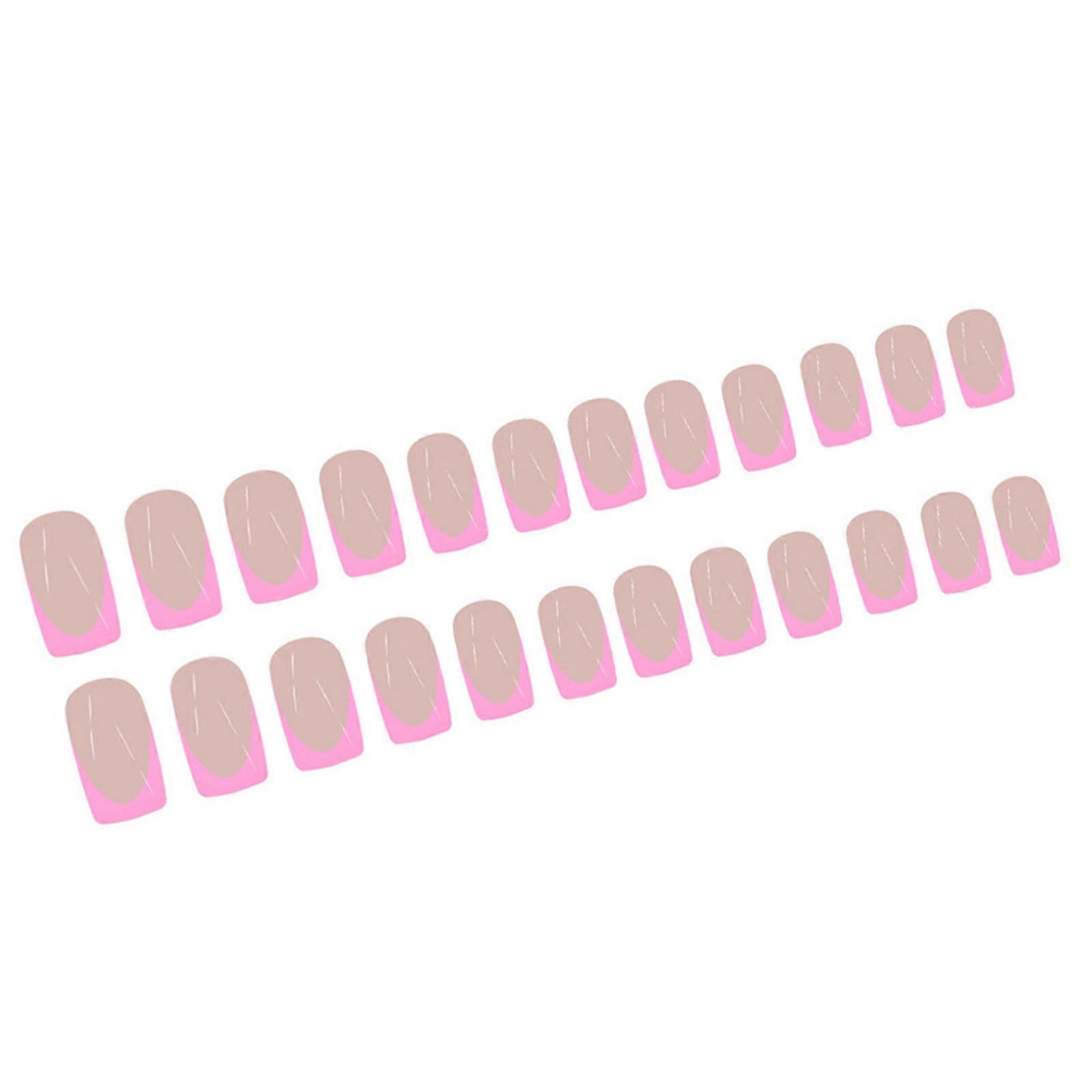 24x/Box French Tip False Nails Simple Full Cover Stick on Nails Short Square Press On Nails Manicures Supplies Multicolor