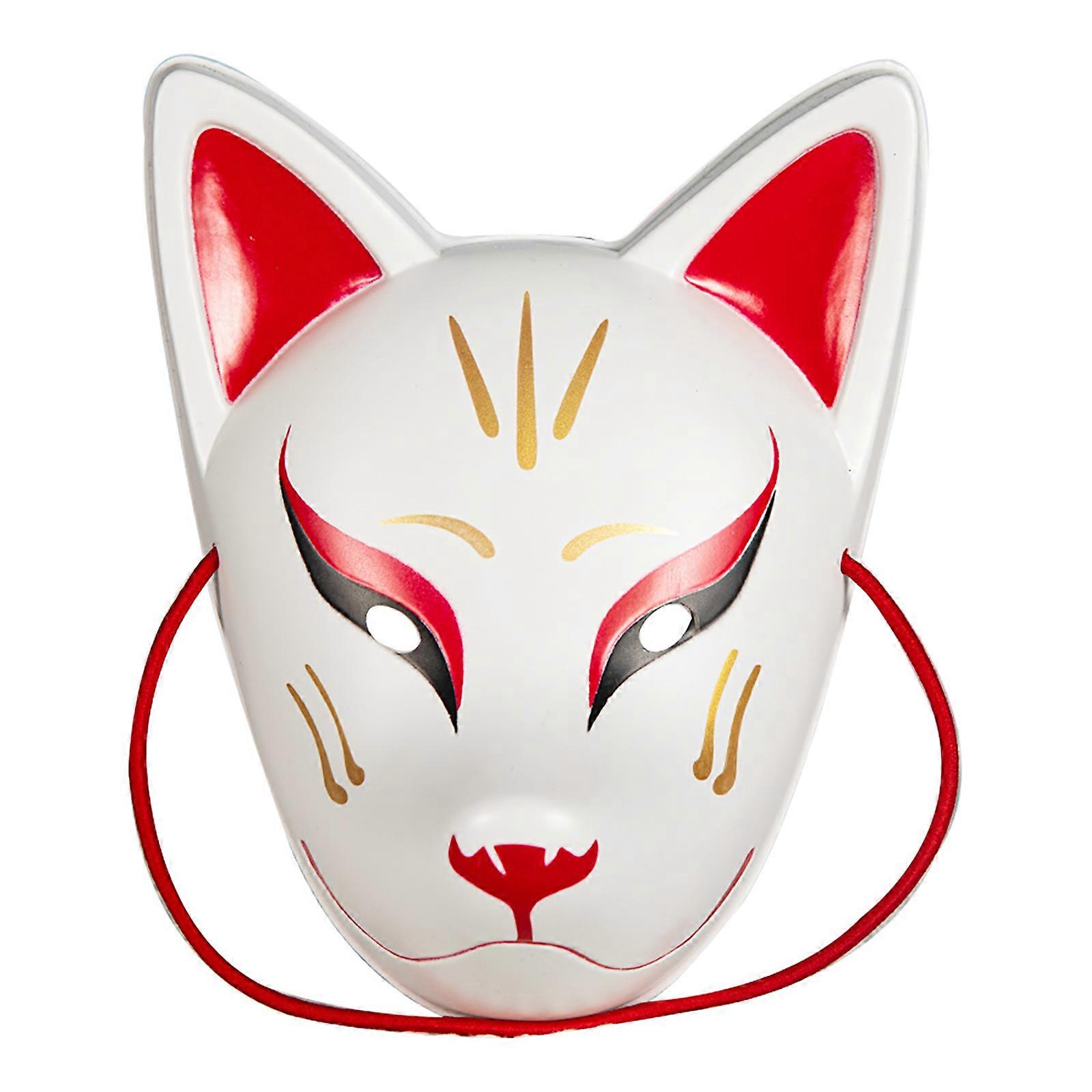 Foxes Mask Japanese Kabukis Kitsune Mask for Men and Women Halloween Masquerade Costume Props,Full Face Cats Mask Props White