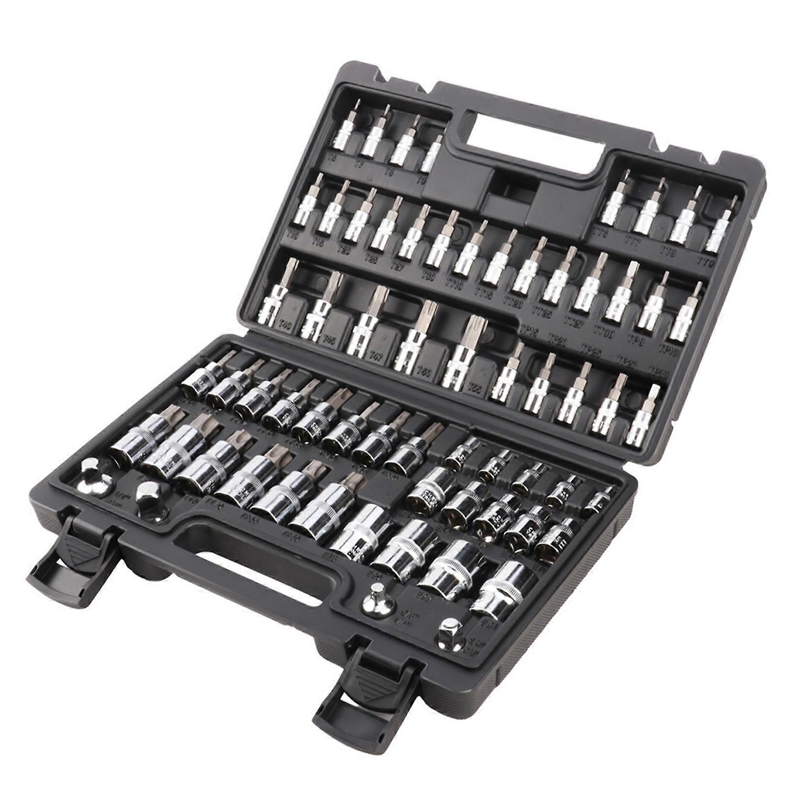 Multipurpose Mechanical Tool Kit 64/37PCS Nonslip Grip Socket Wrenches Set Including Storage Box For Automotive Maintenance Multicolor