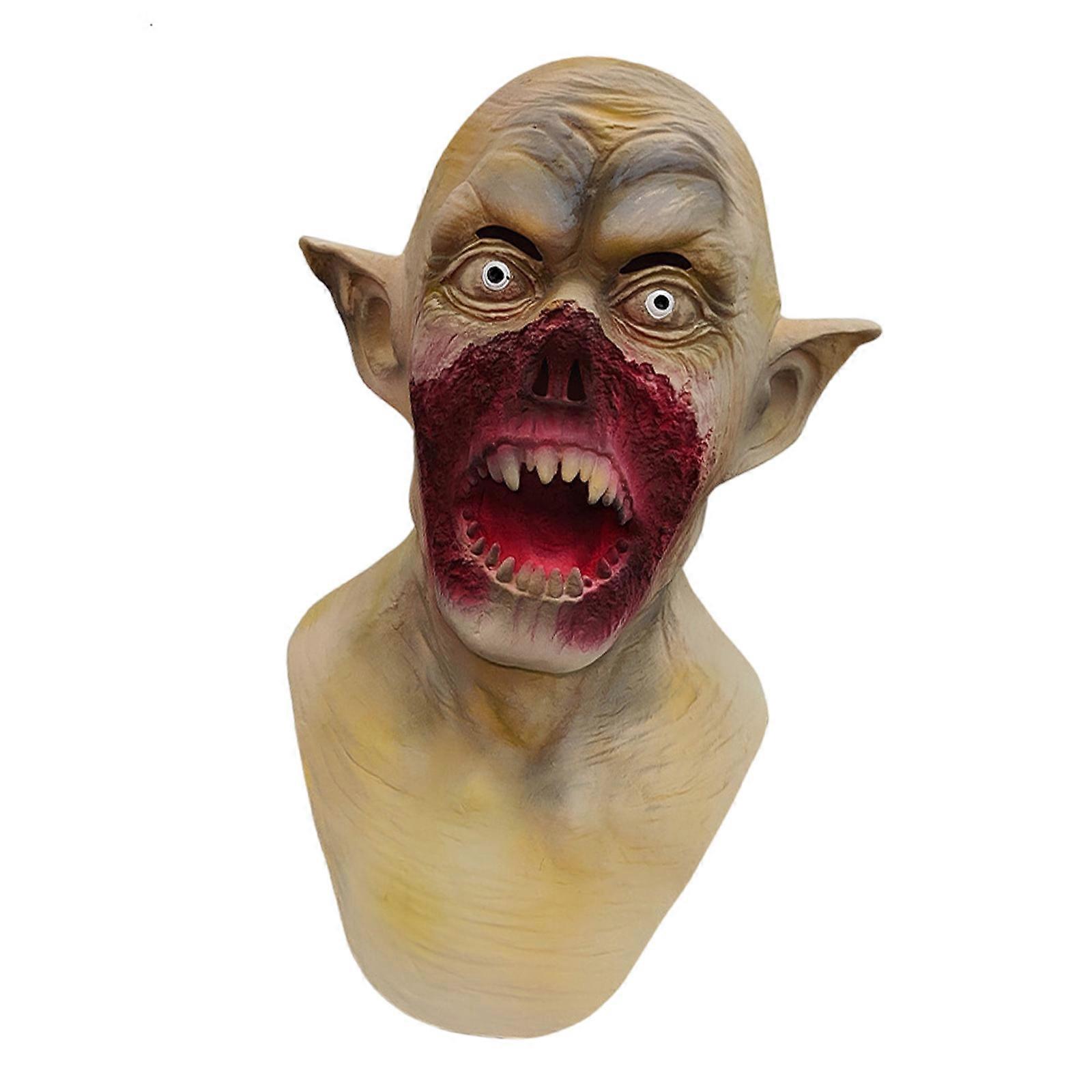 Gruesome Wide Mouth Bloodsucker Mask Breathable Bloodied Latex Headgear for Halloween Celebration Costume Accessory color