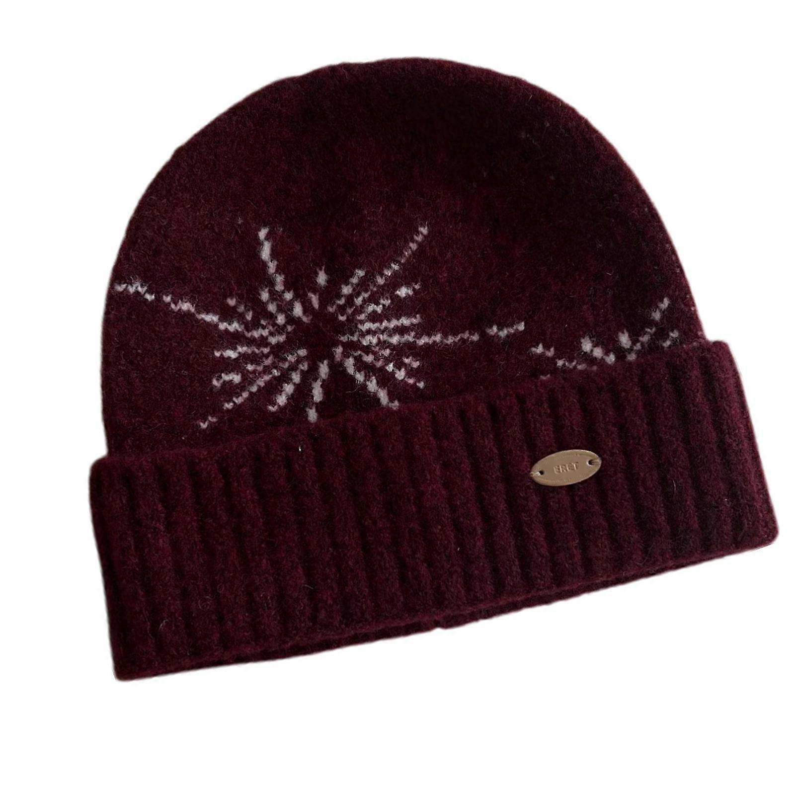 Snowflake Design Brimless Hat Knitted Pullover Hat Soft Acrylic Fiber Winter Hat For Men Women Youth Outdoor Daily Wear Burgundy