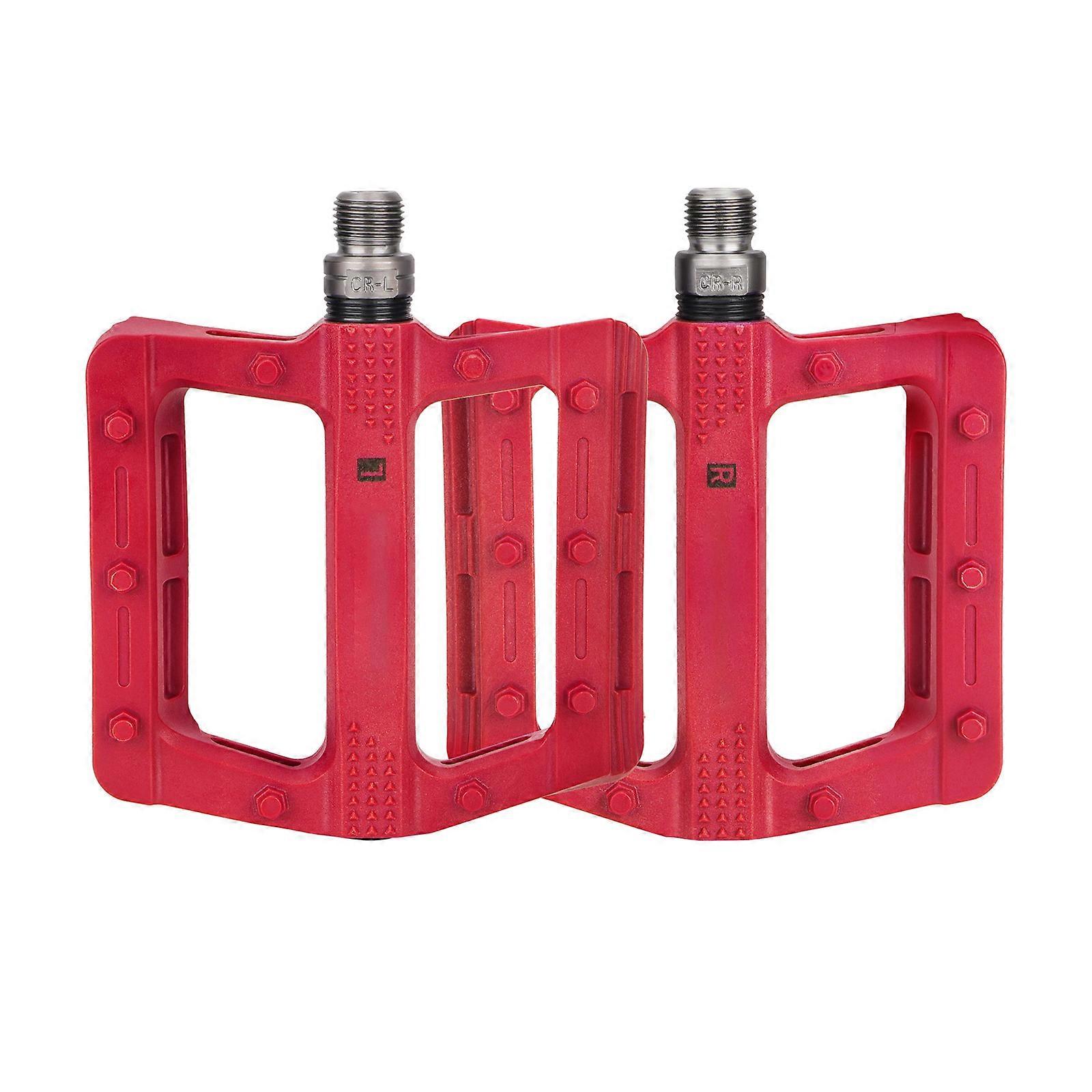 Light Weight Nylon Mountain Bicycles Pedals Wide Flat Cycling Pedals Seal Bearings Nonslip Bicycles Pedals Easy to Use Red