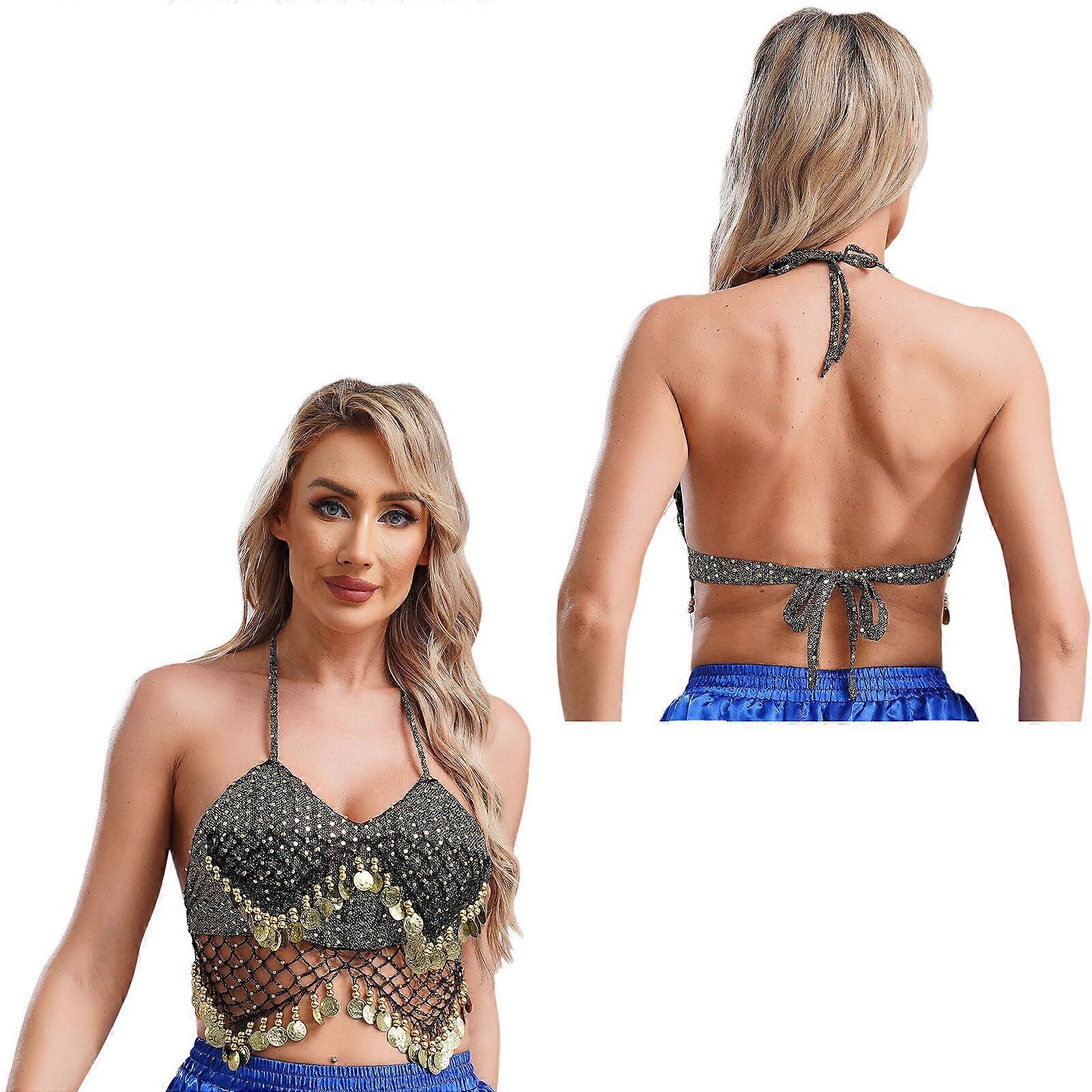 Womens Sparkly Sequins Halter Bra Top Latin Belly Dance Tops Halloween Costume