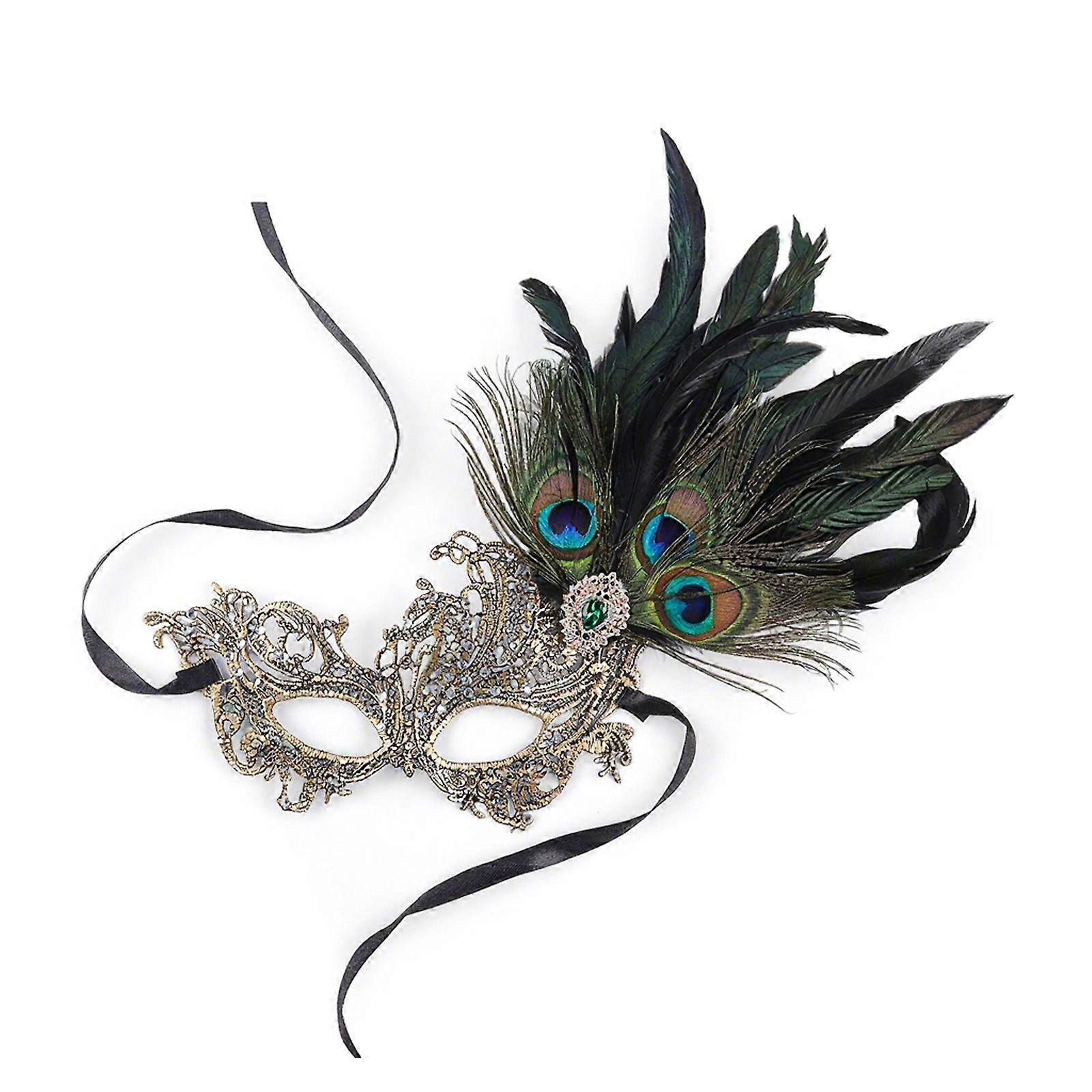 Feather Rhinestones Masquerades Mask Venetians Mask for Women Halloween Christmas Half Face Mask Eye mask Cosplay Props Gold