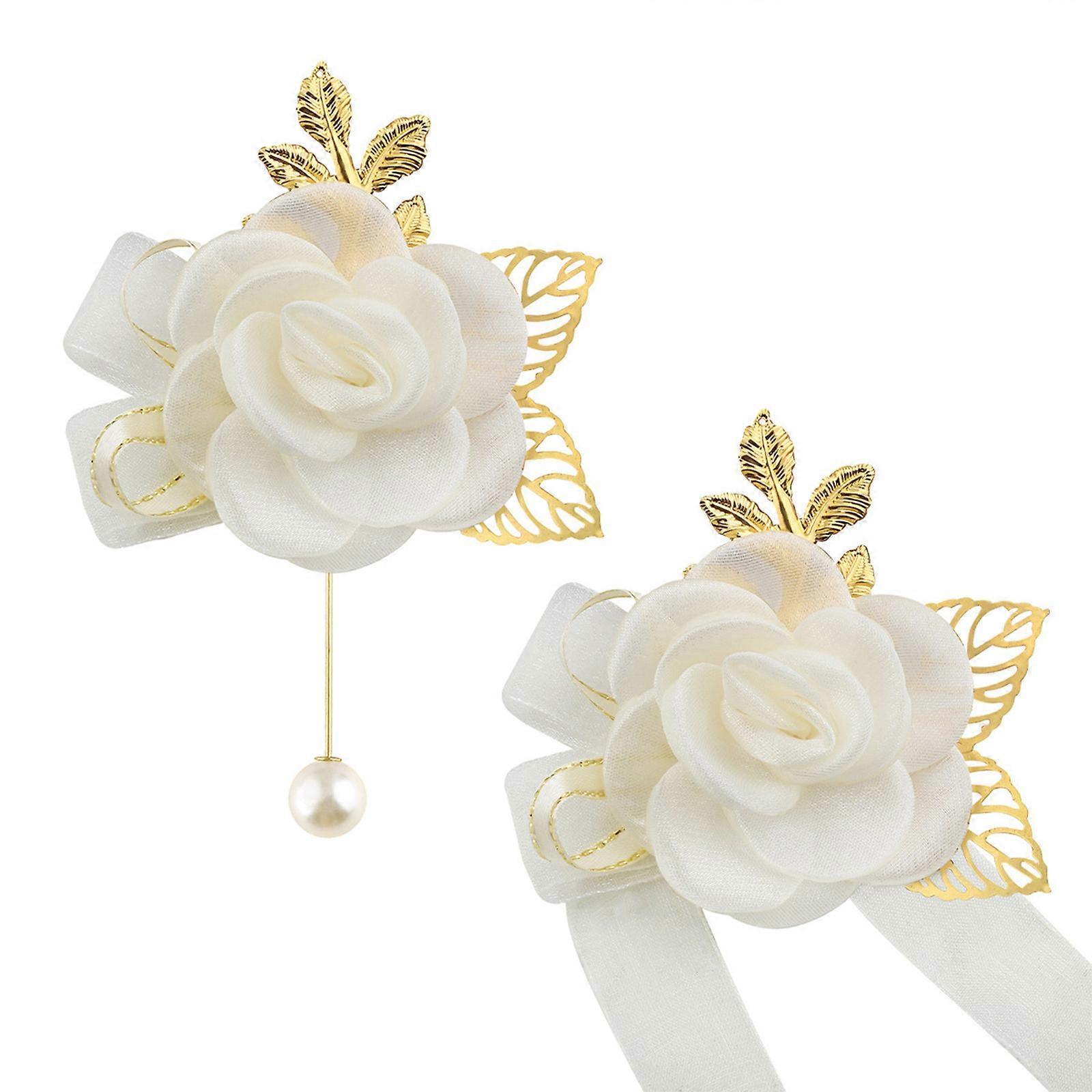 Fabric Flower Wedding Corsage Set Chest Flower Pin Boutonniere For Couples Bride Groom Wedding Celebration Jewelry Cream color