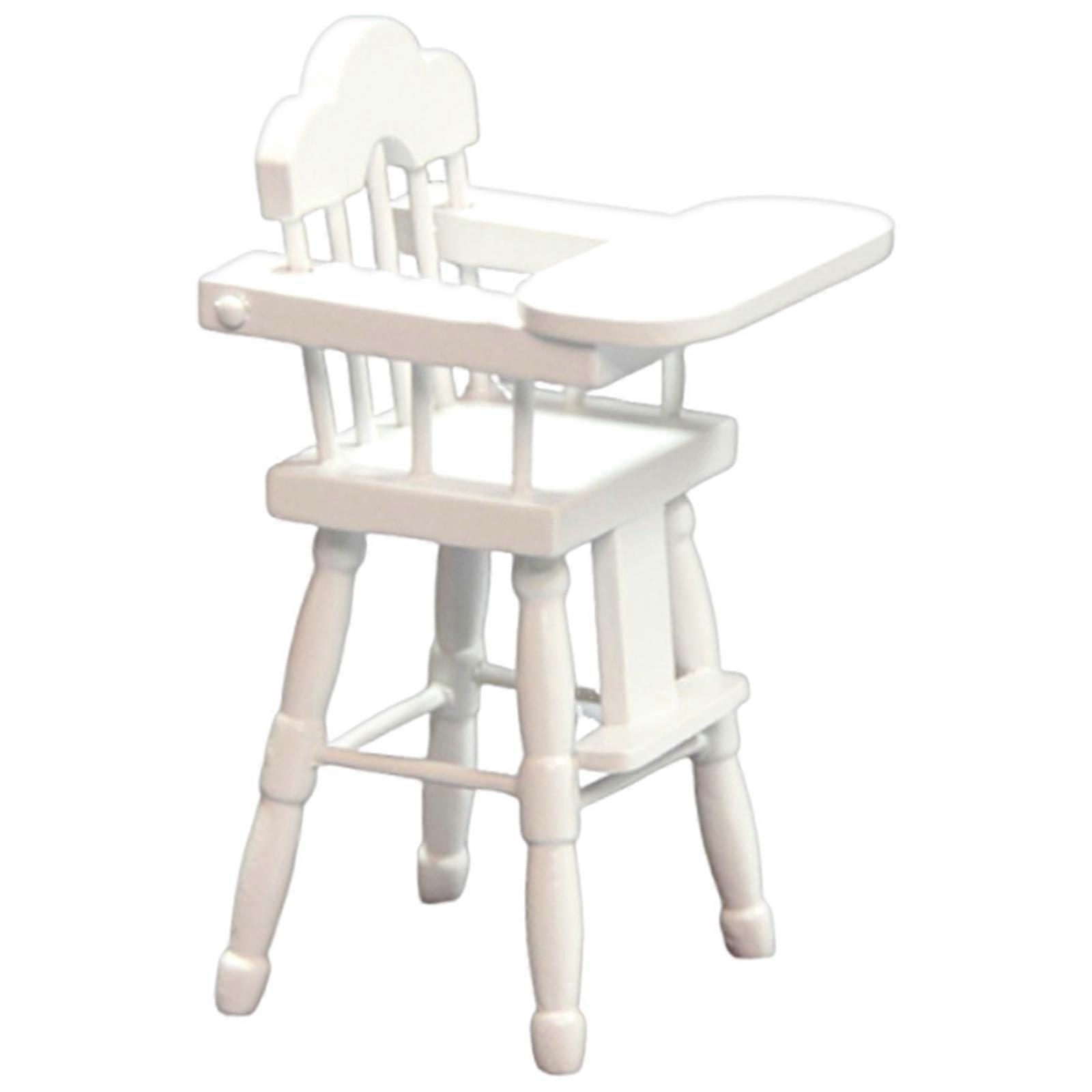 1/12 Scale Wooden Dollhouses Baby High Chair Miniature Realistic Dining Furniture for Kids Role Play White