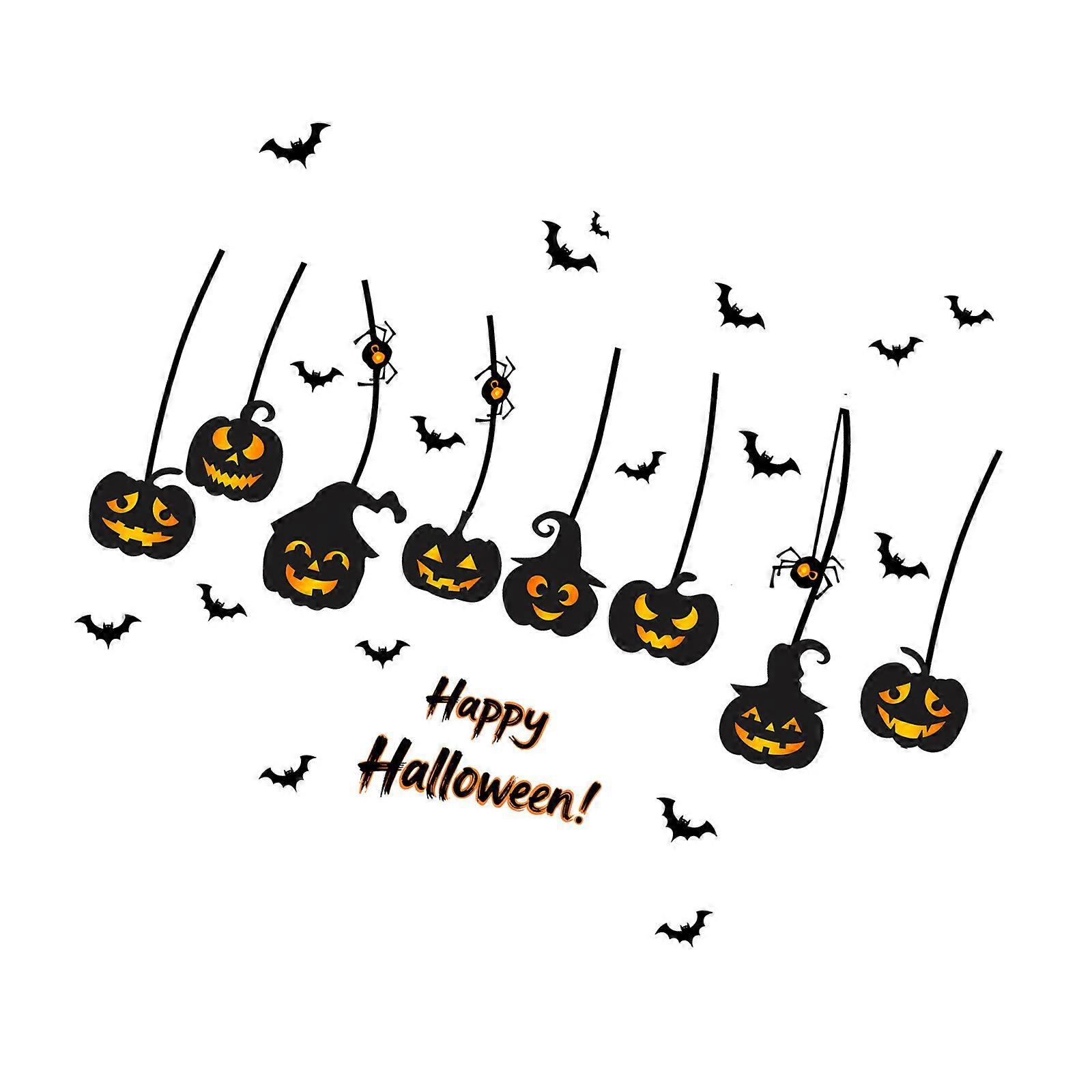 Reusable Halloween Window Sticker Bat And Pumpkin Design Static Adhesive Decal Clings Decors For Indoor and Outdoor Use Multicolor