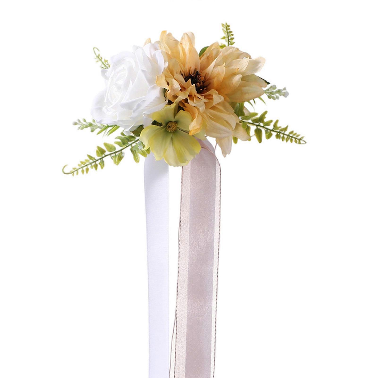 Durability Artificial Wedding Chair Flowers For Reception Decoration and Bridal Car Ornaments Yellow
