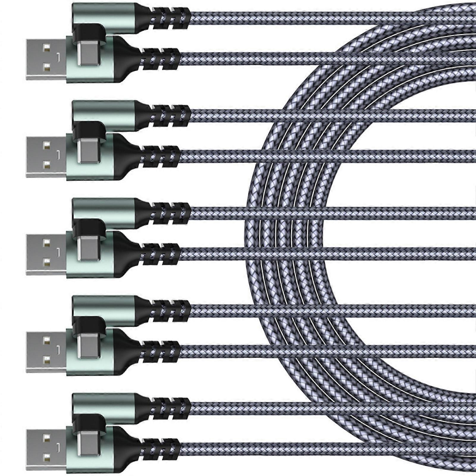 Features: 90 degree angled USB Type C cable with 2m length enables convenient charging in tight space while supporting fast 3.0 data transfer and intelligent safetys protections for devices. Premium braided nylon construction features reinforced stress point design, ensuring exceptional durability through 10,000+ bend tests and daily wear resistance. Ideal for smartphone gamers, frequent traveler, and various device users needing reliable charging solution for phones, tablets, switches. Perfect for bedside charging without cable strain, car backseat power access, or workspaces setups requiring extended reach and cable management. Engineered with intelligent charging chip to prevent overheating and overcurrent, this USB C angled cable maintains charging speed while protecting device battery health. Specifications: Material: Weaving Color: Black/Gray Size: Approx. 78.74inch(200cm) Package Includes: 5PCS Elbow Data Cable note: Please allow 1-2cm errors due to manual measurement. Due to the differences between different monitors, the picture may not reflect the actual color from the item.
