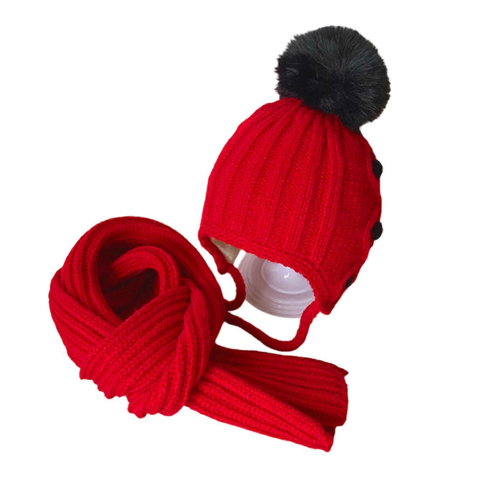 Stylish Korean Styles Winter Hat Scarf Set For Kids 2-4Y Warm Knitted Pullover Hat Neckwear Outdoor Activity Accessories Red