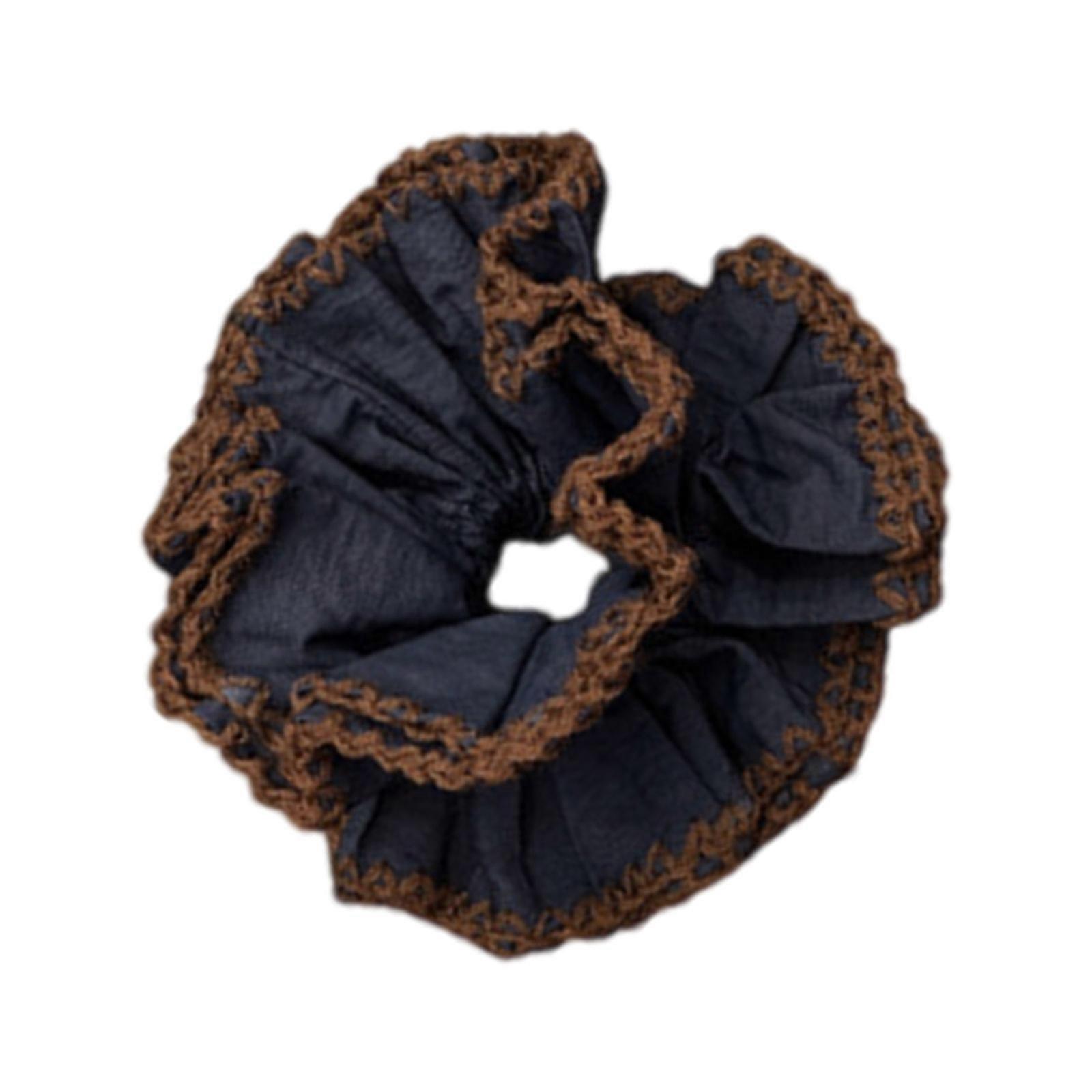 Elastic Knitted Hair Ties With Delicate Lace Detail Soft Fabric Scrunchies For Women Fashion Accessory Stretch Design Coffee border