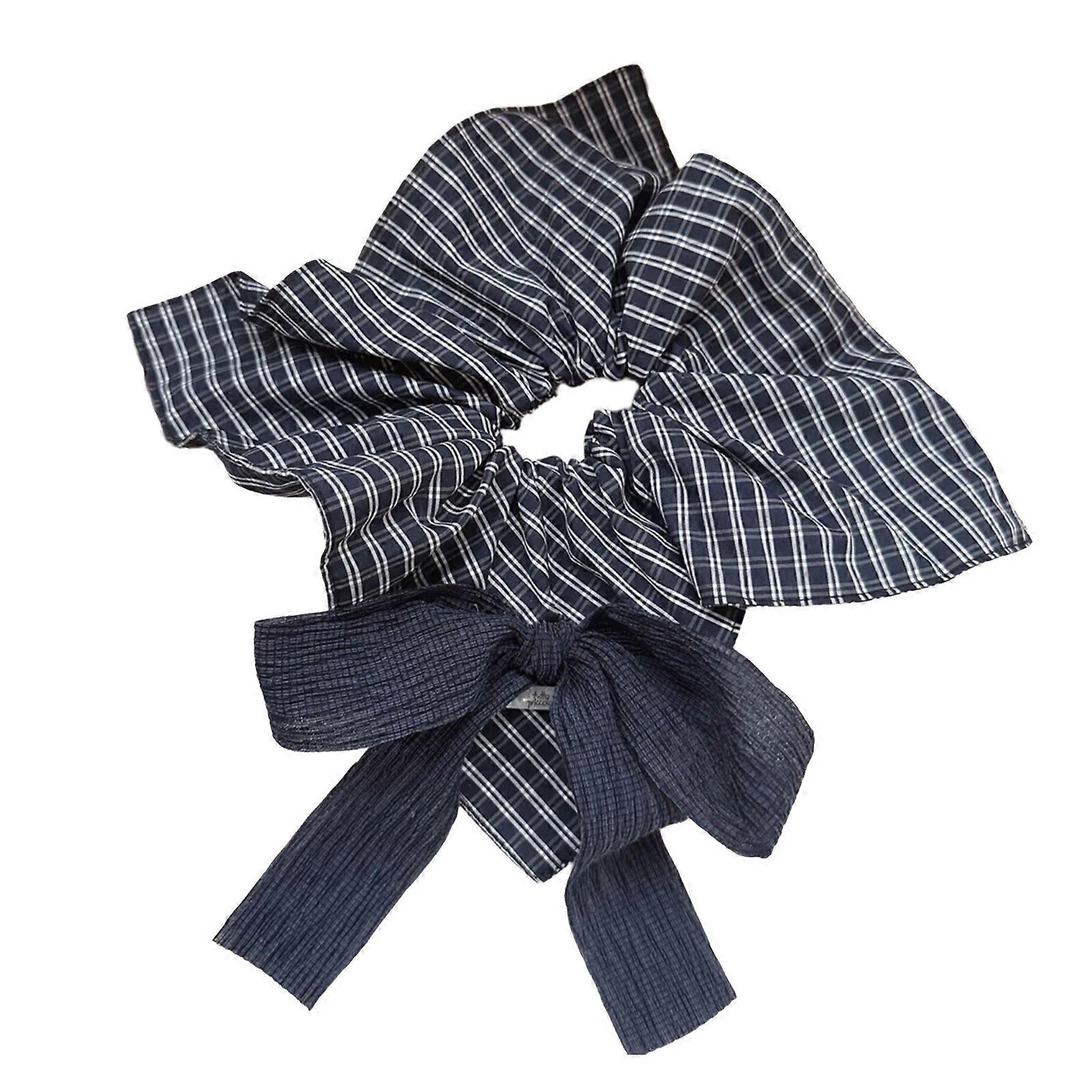 Elegant Blue Checkered Bowknot Hair Tie Soft Fabric Hair Scrunchies For Women Girls Daily Styling Accessory Headdress Multicolor