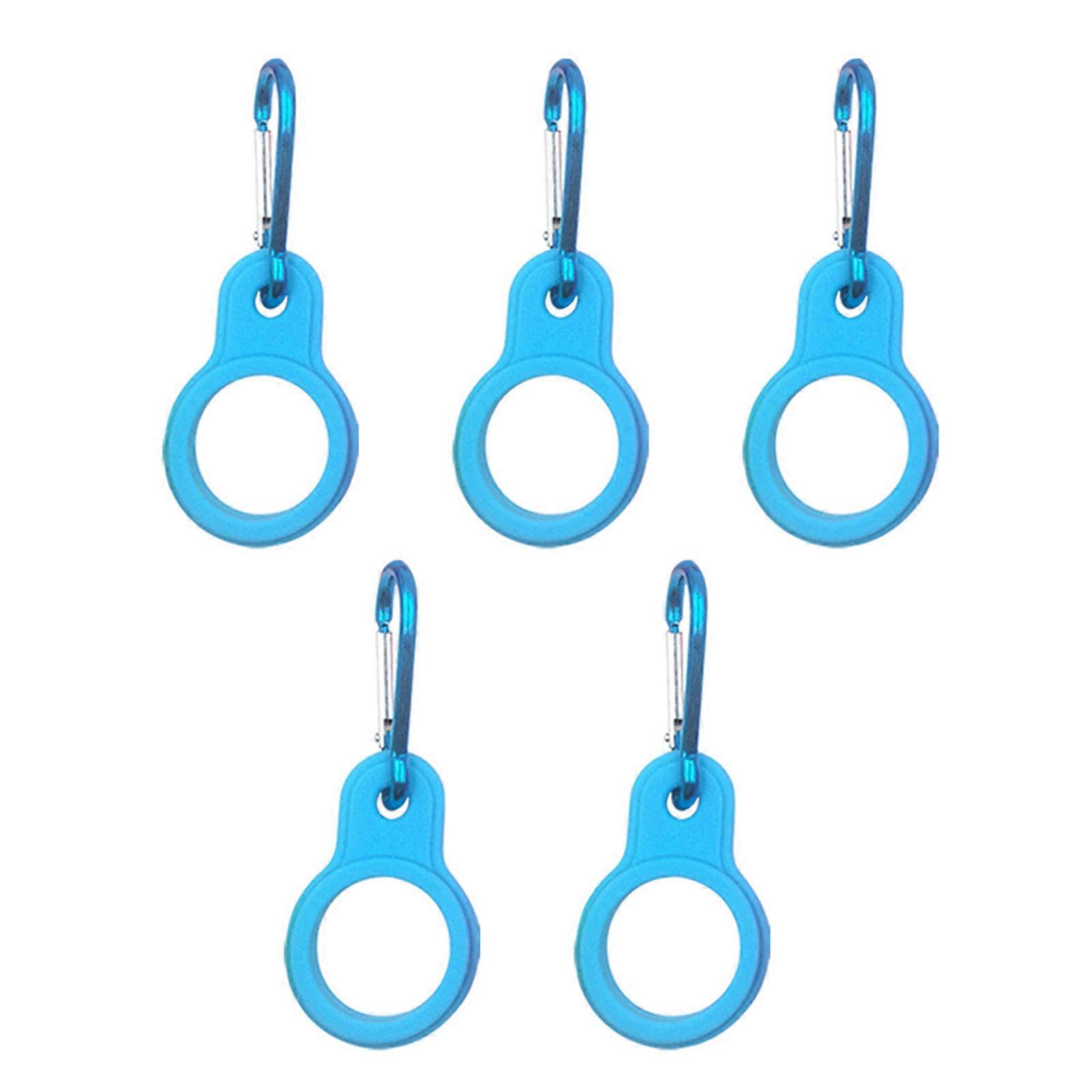 5PCS Flexible Silicone Keychain Hooks For Sport Bottles Water Bottle Holder with Carabiner Lightweight Climbing Gear Sky Blue