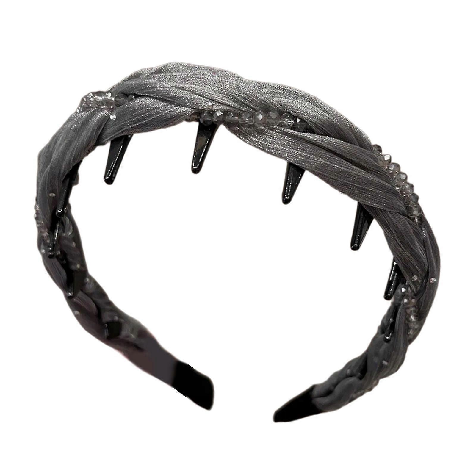 Women’s Nonslip Rhinestoned Hairband High Cranium Support Fashionable Hair Accessories for Face Washing Gray