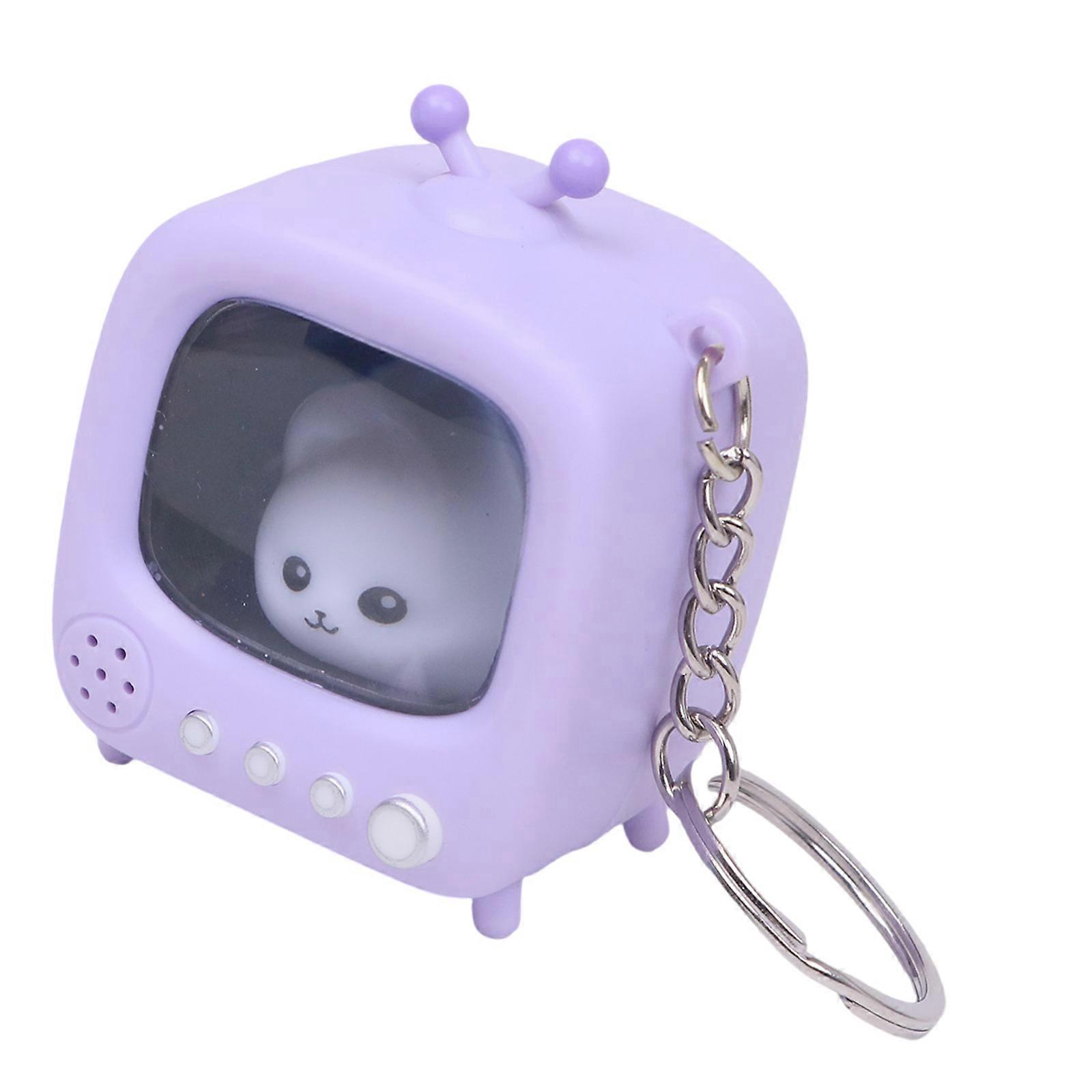 Retro TV Keyring LED Illuminated Night Light Feature For Keys Backpacks Children's Gifts Plastic Novelty Accessory Purple