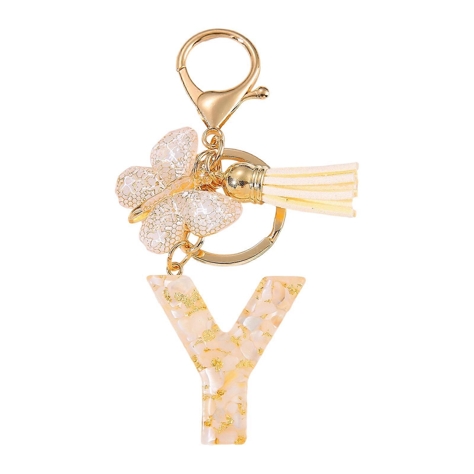 Stylish Butterfly Charm Keychain With Alphabets Letter Tassels Ornament Resin Metal Jewelry For Women Men Multicolor