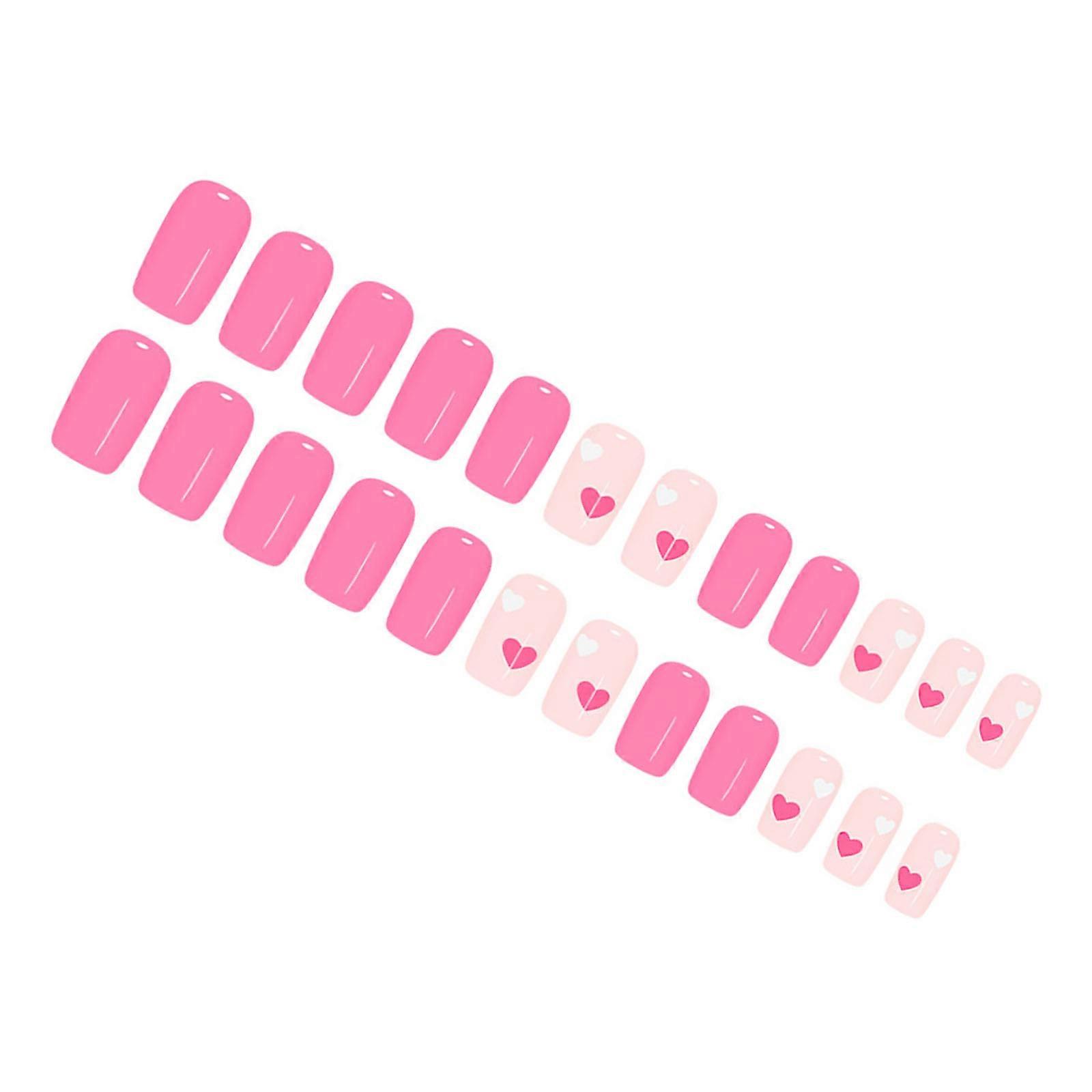 24Pcs Short False Nail Glossy Finish French Manicure Pink White Heart Design ABS Material Easy Application Multicolor