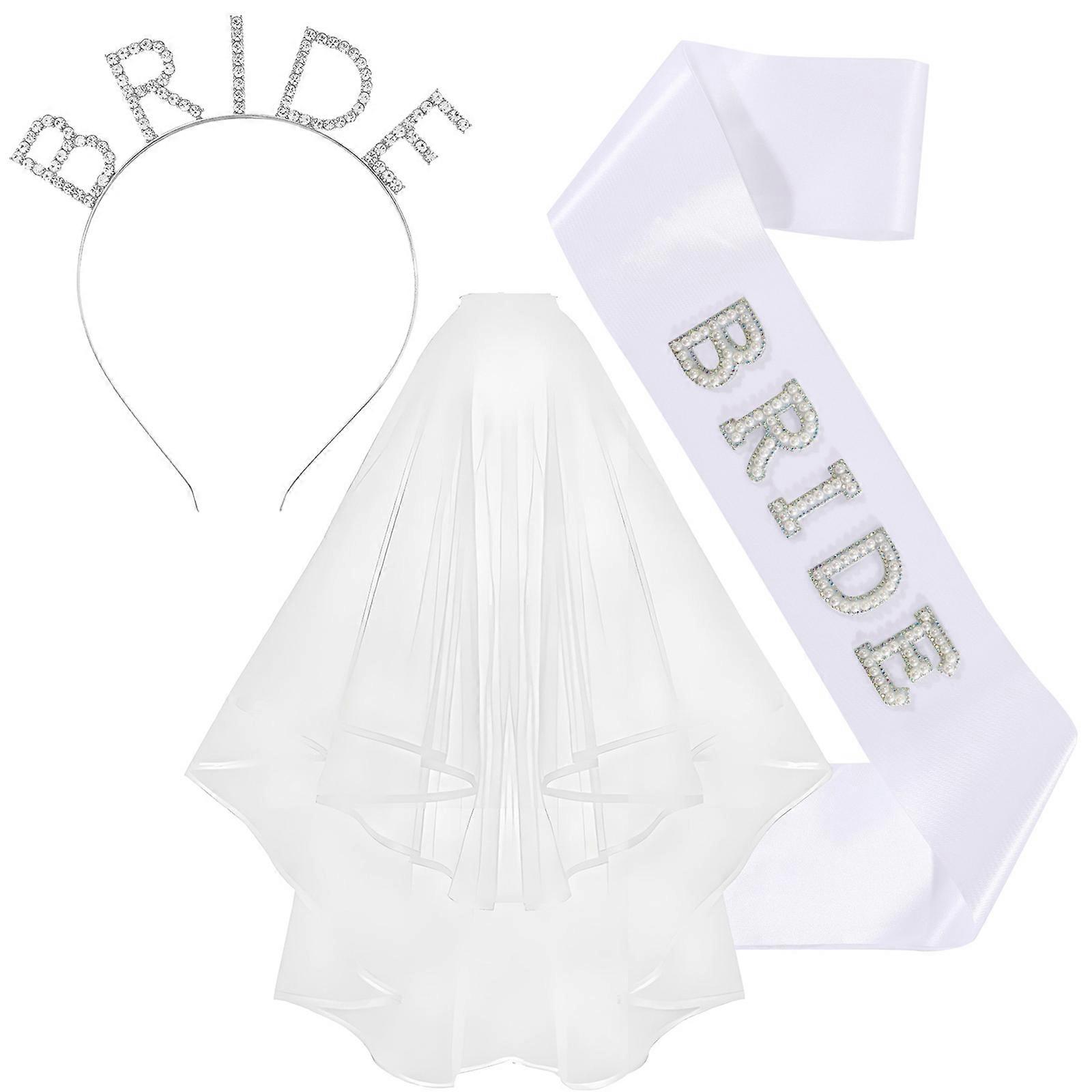 Wedding Day Set Rhinestones Hair Ornament Bridal Veil With Adjustable Shoulder Fasteners Multicolor