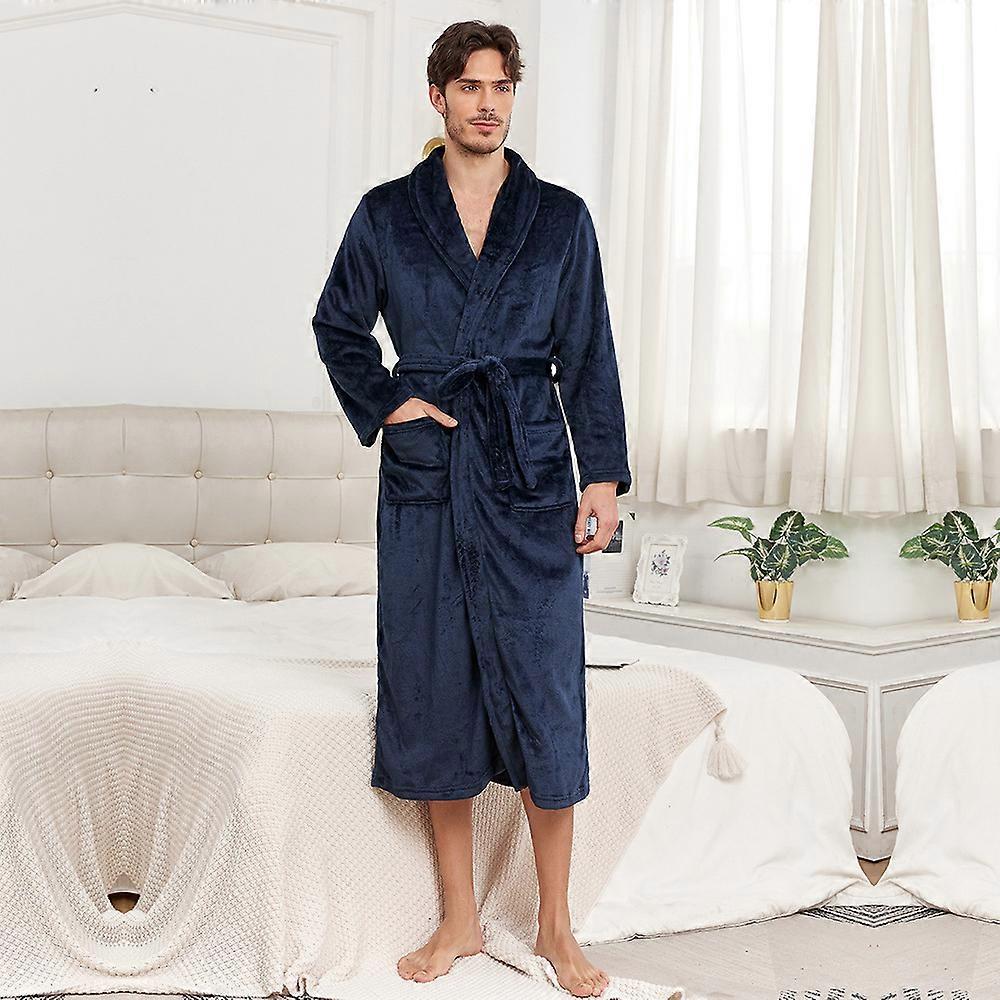 Solid color plus size lapel men's bathrobe, loungewear, hotel autumn and winter pajamas, flannel, casual wear for couples