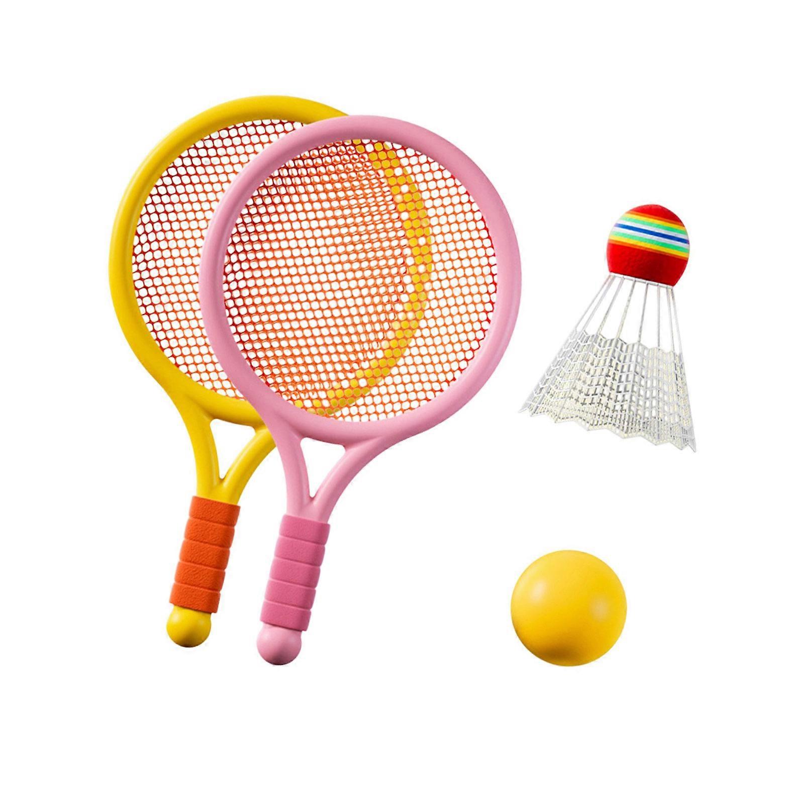 Portable Kids Badminton Pair Racket Tennis for Children Outdoor Sports Badminton Racket Play Tennis Ball Pink yellow