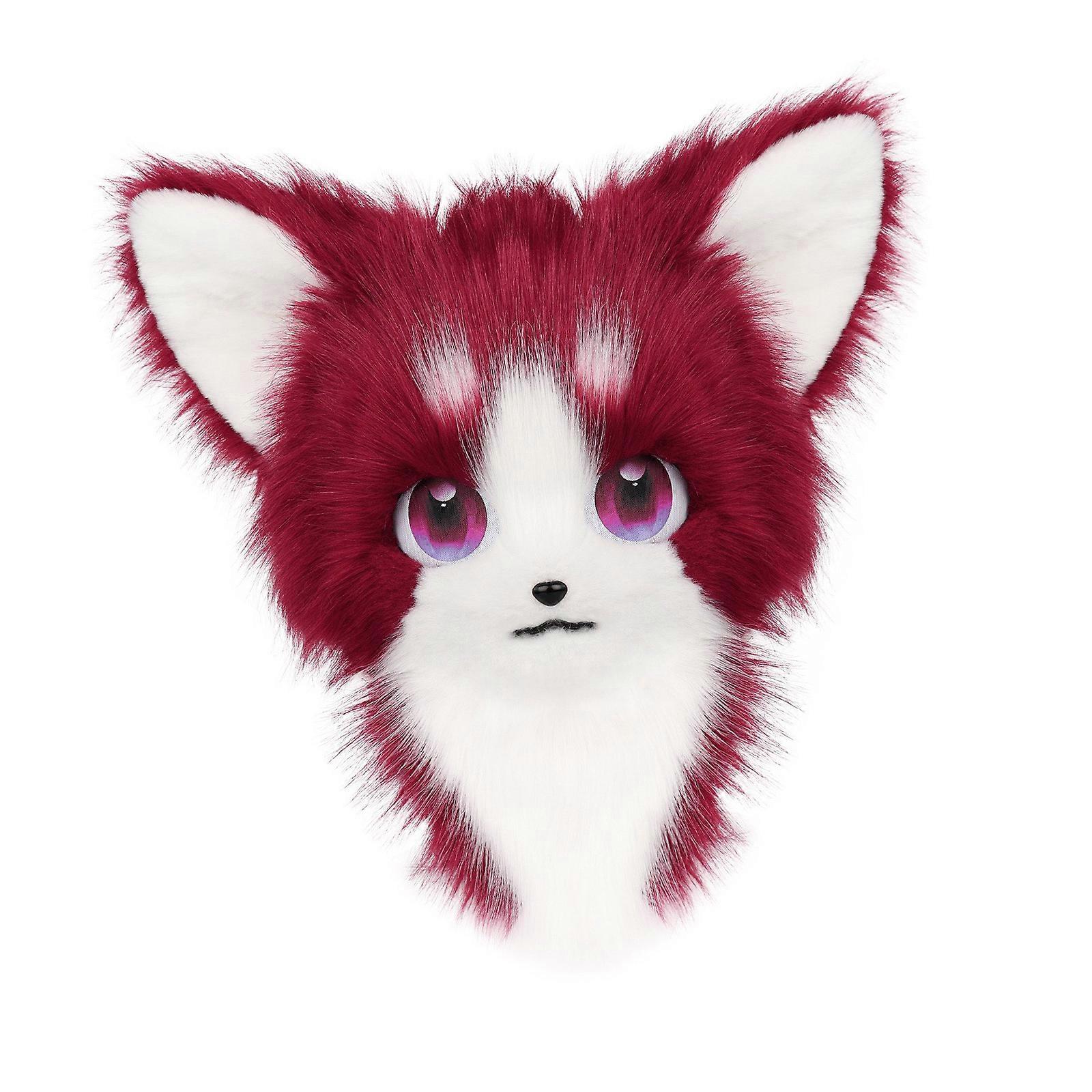Furry Animal Head Cats Fursuit Cut Mask Plush Cats Mask Lovely Cats Headgear Halloween Masquerade Cosplay Party Props Wine red and white