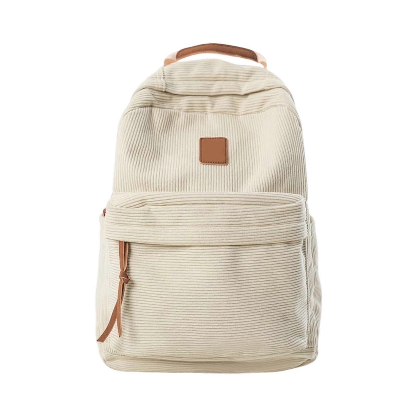 Wear Resistant Corduroy Backpacks Ergonomic Strap Multiple Compartments Book Bag Ideal for Study Work Outdoor Activity White