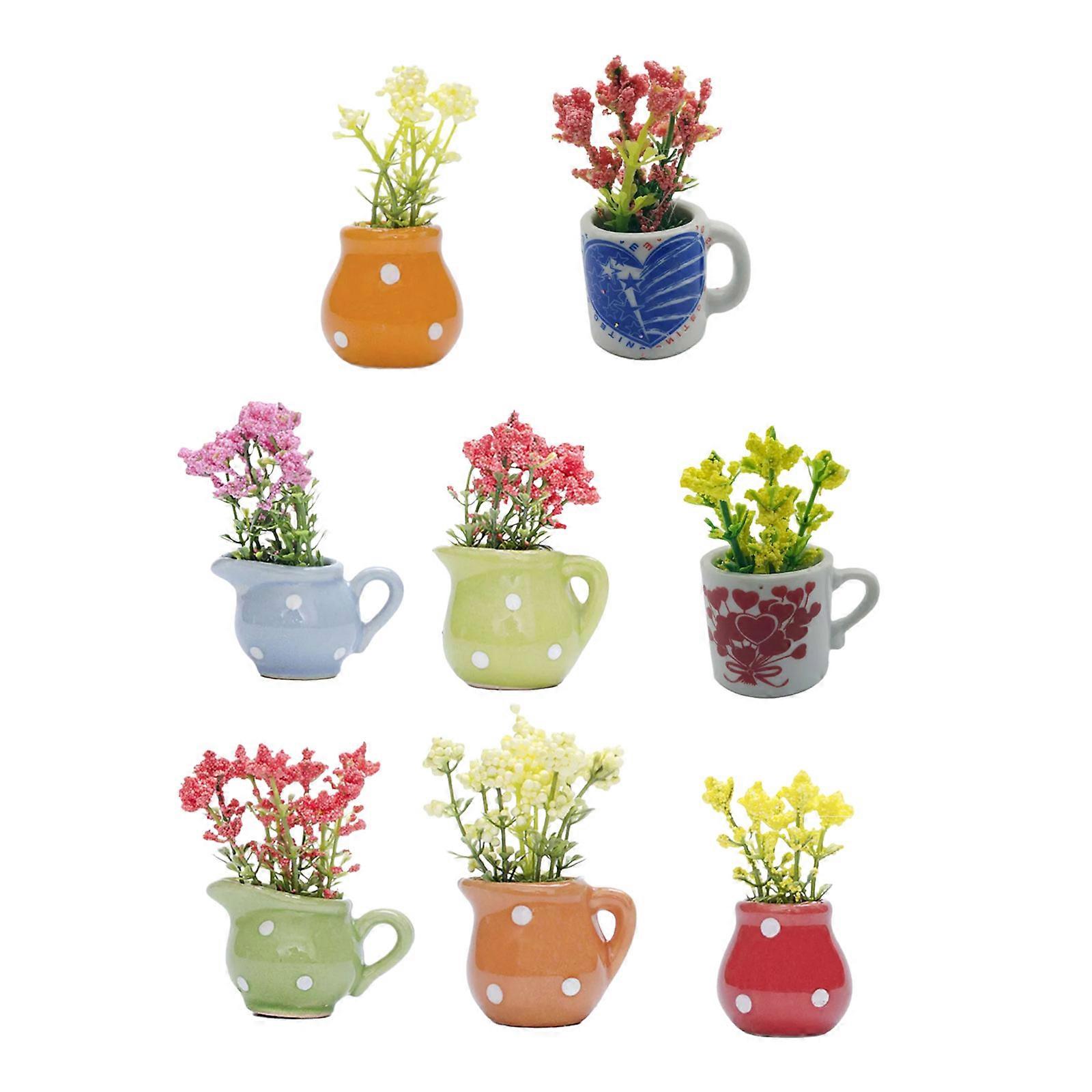 8Pieces Magnetic Bud Vases Ornaments For Refrigerator Resins Flower Pot Magnets Farmhouses Kitchen Decors Accessories Multicolor