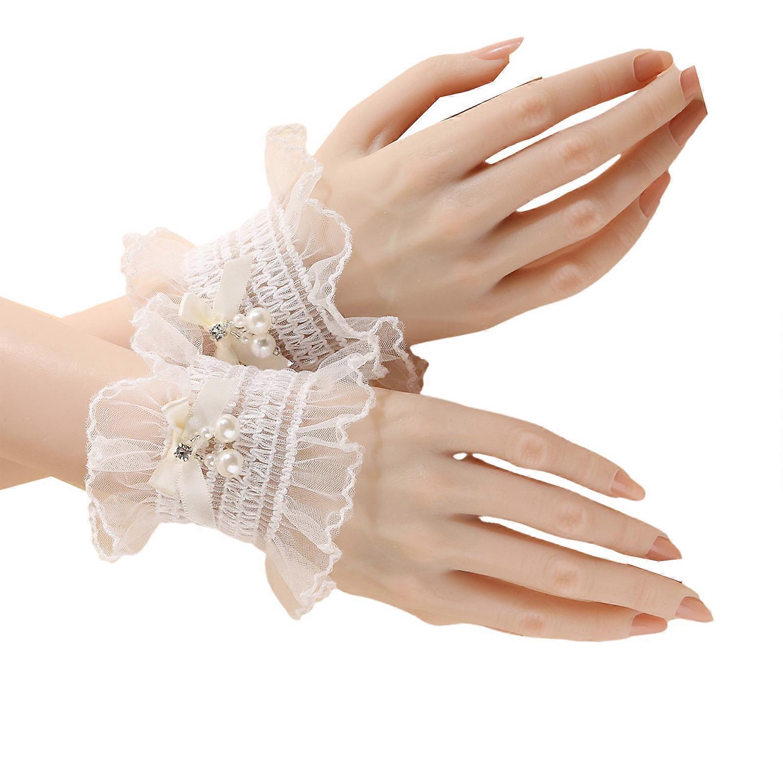 Elegant Lace Wrist Cuffs For Weddings Parties And Prom Event Breathable Lightweight Design Wrist Ornament White