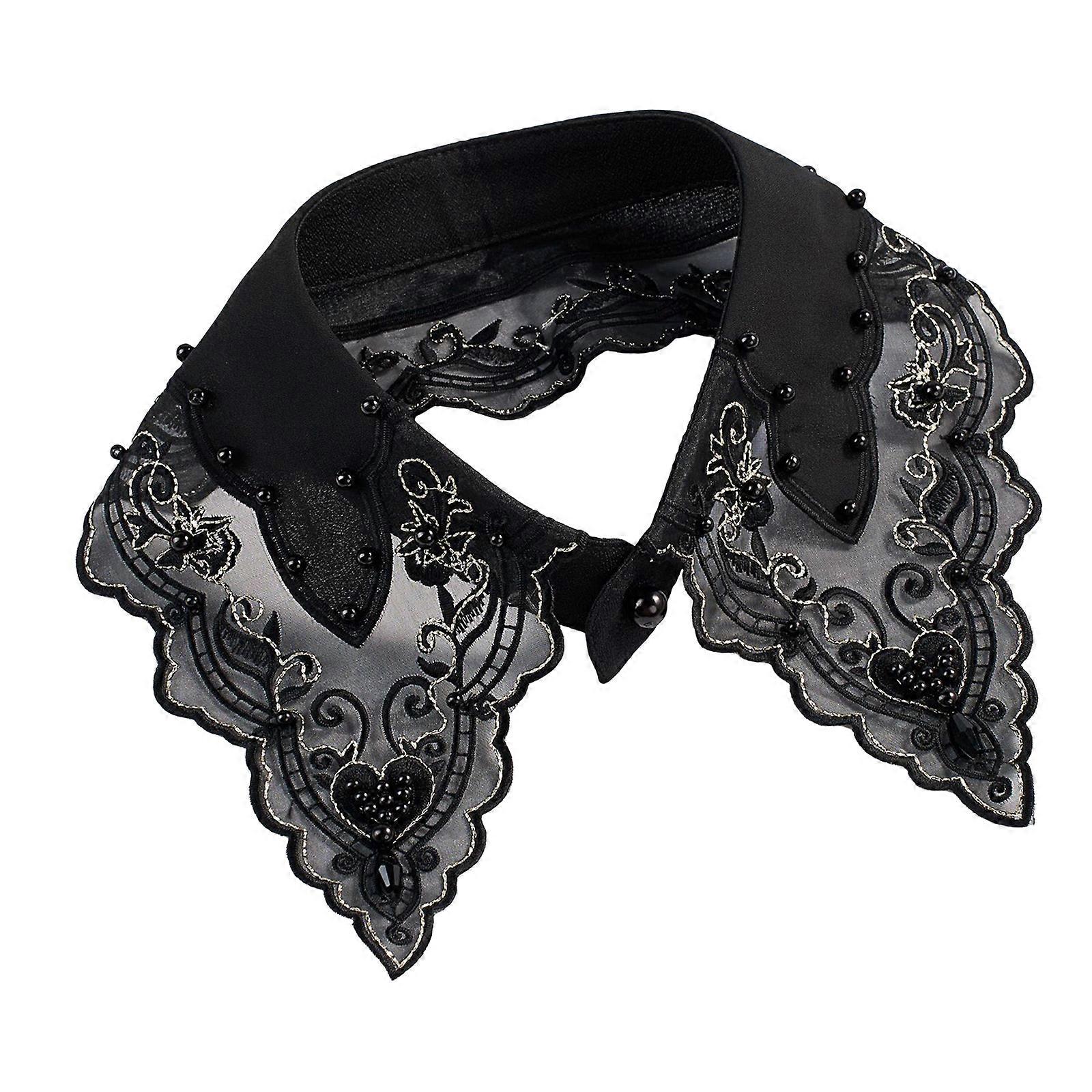 Adjustable Decorative Collar Embroidered Pearls Victorian Energized Polyester Detachable Neckwear For Dresses Black